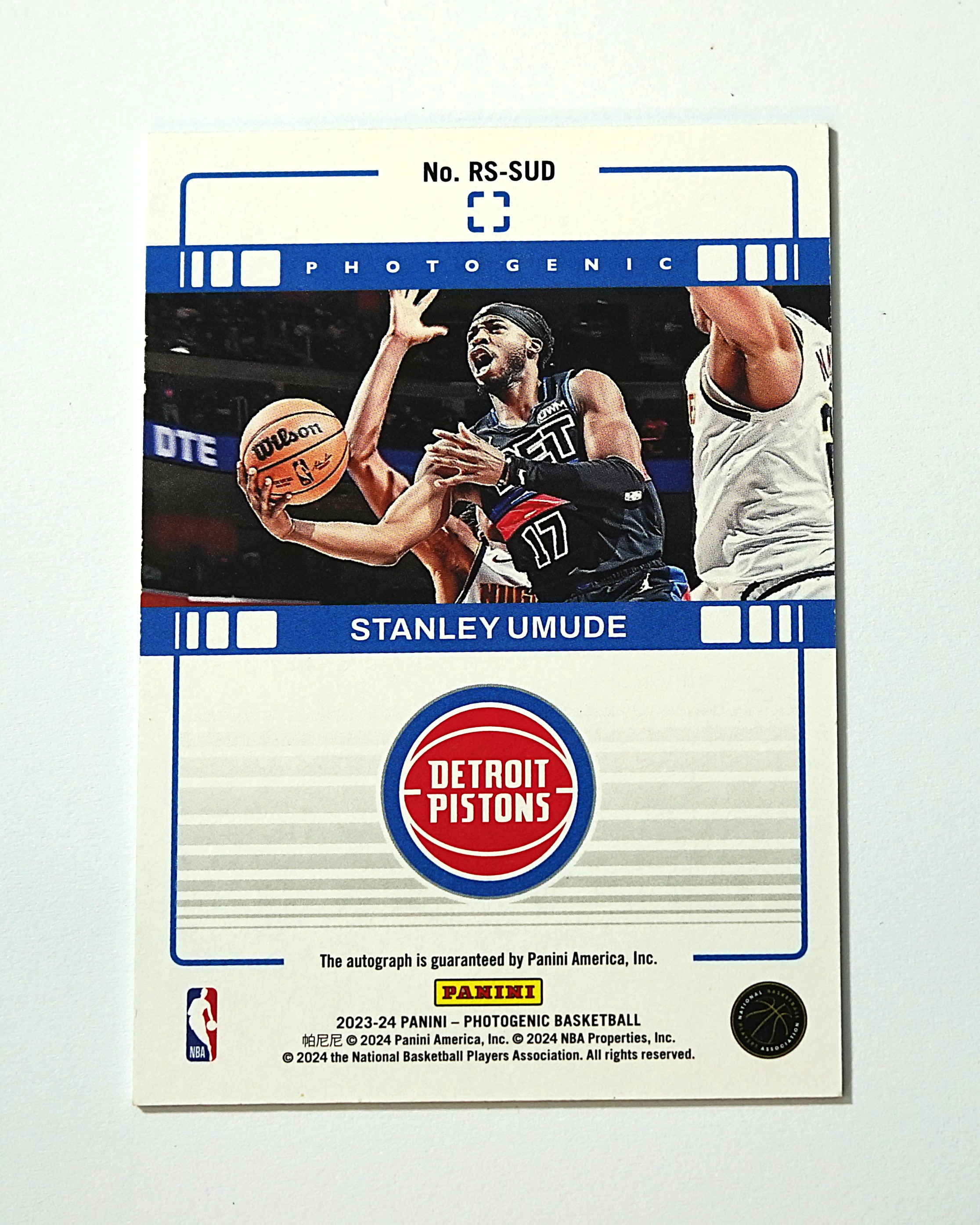 2023-24 Panini Photogenic Stanley Umude RC 上镜 斯坦利 乌穆德 06/10编 金折 新秀 签字 低编 活塞 雄鹿 扬尼斯队友 未来可期 卡品如图【Liq】