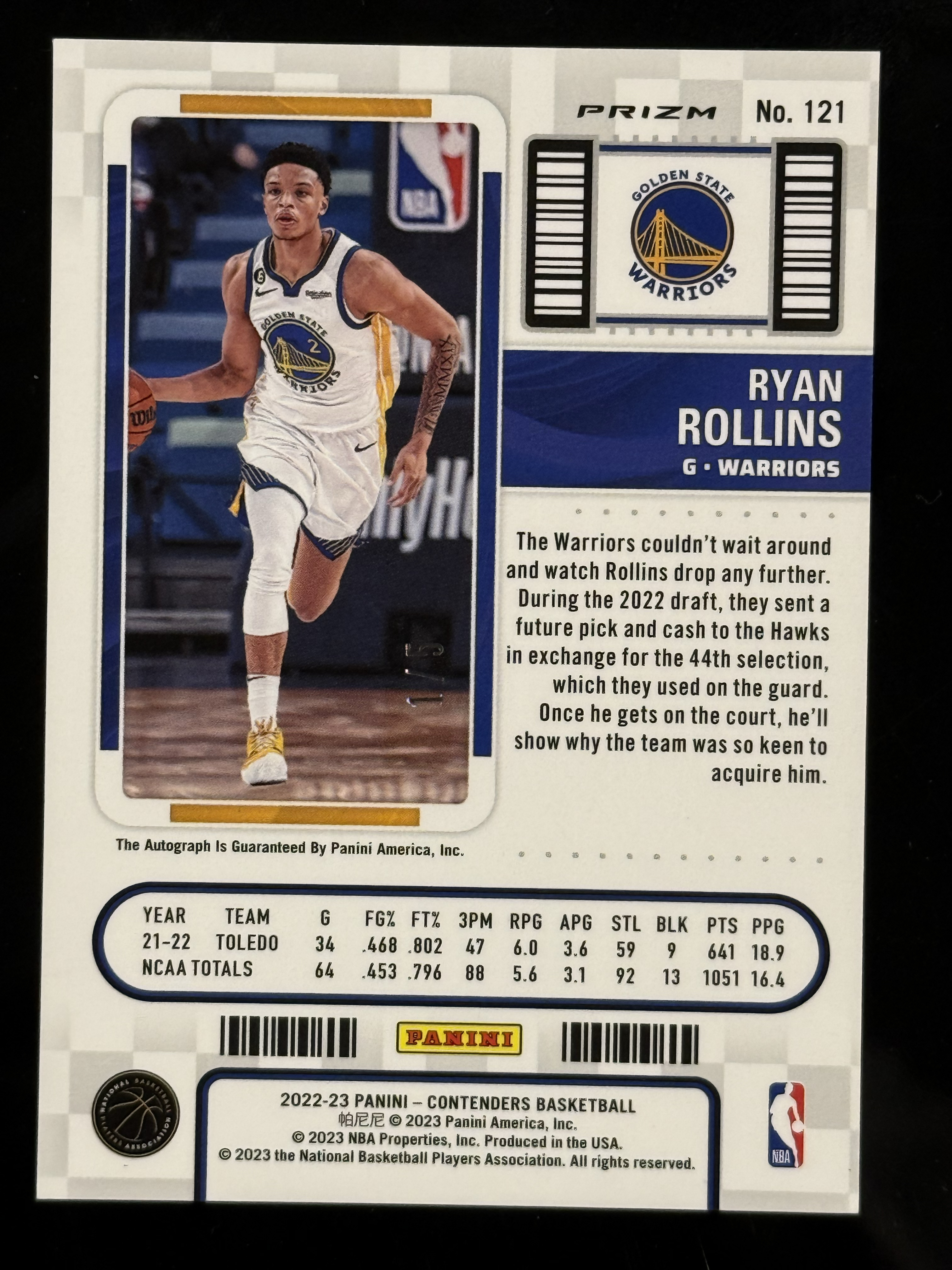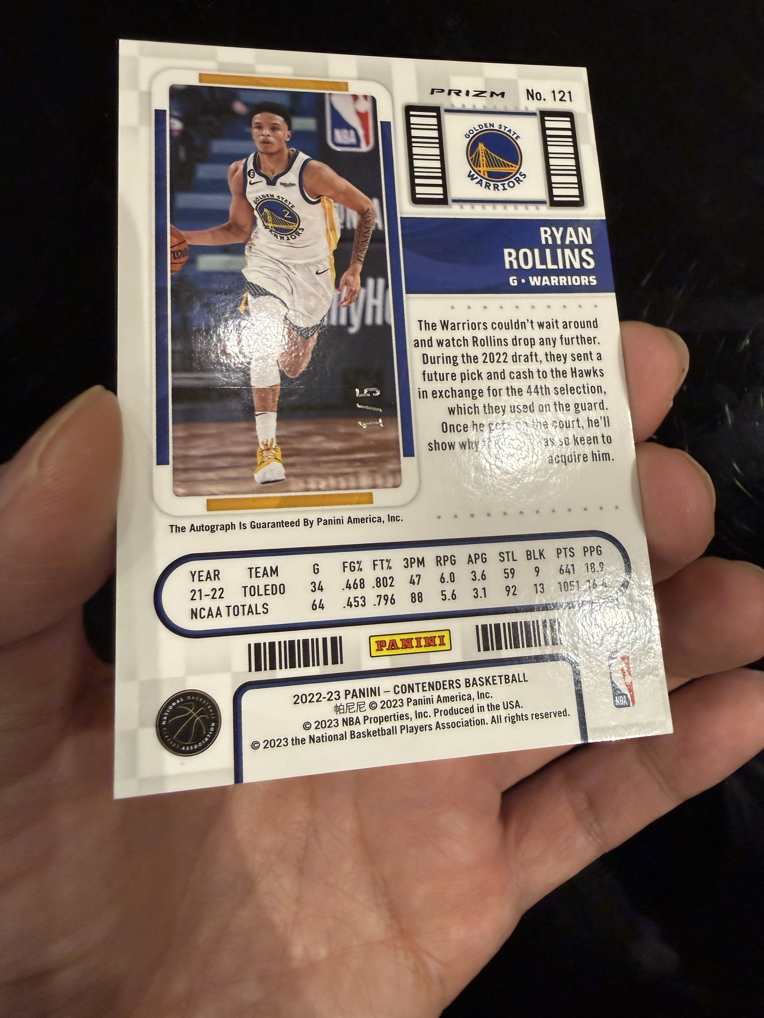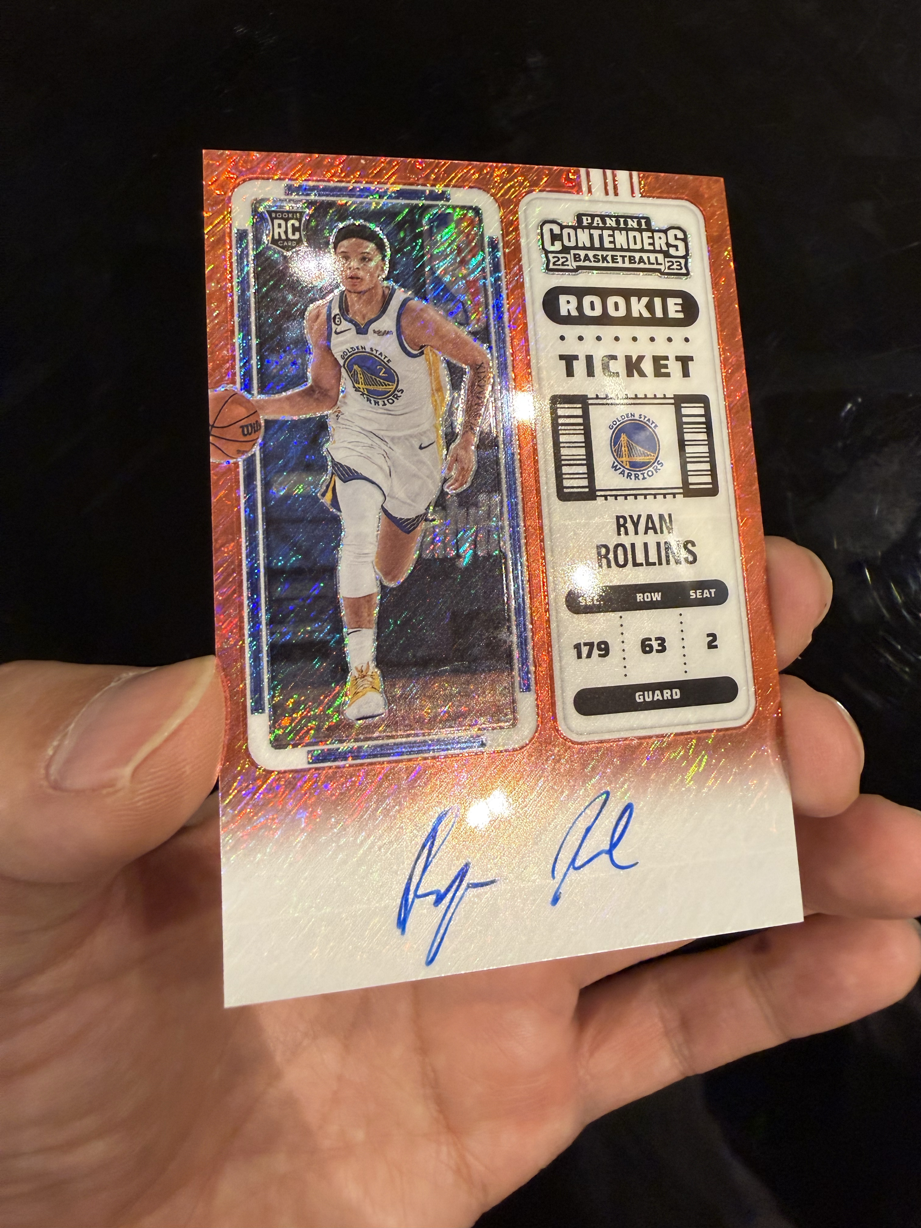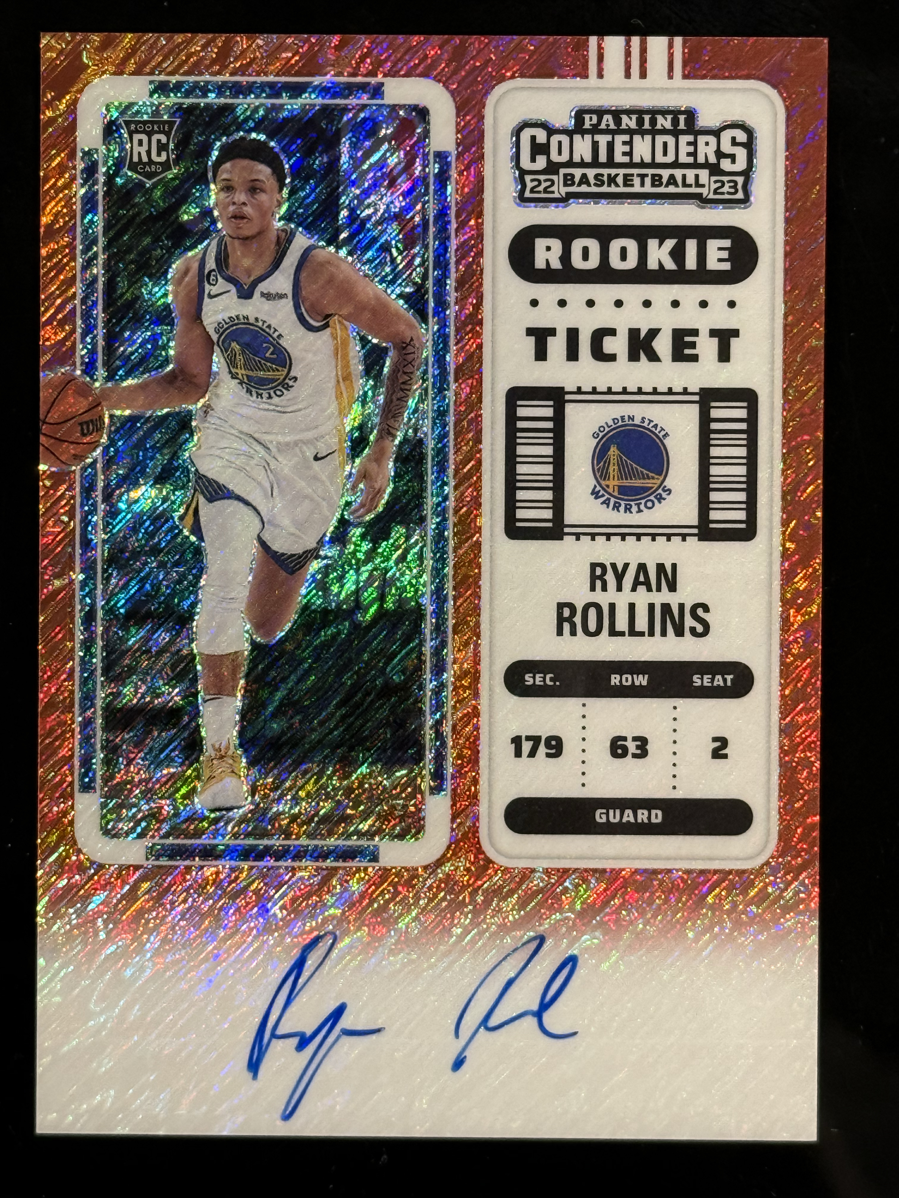 2022-23 Panini Contenders Optic Ryan Rollins RC 罗林斯 新秀RC Optic 红雨点折 Shimmer 5编 签字 超低编 瑕疵如图 介意勿拍