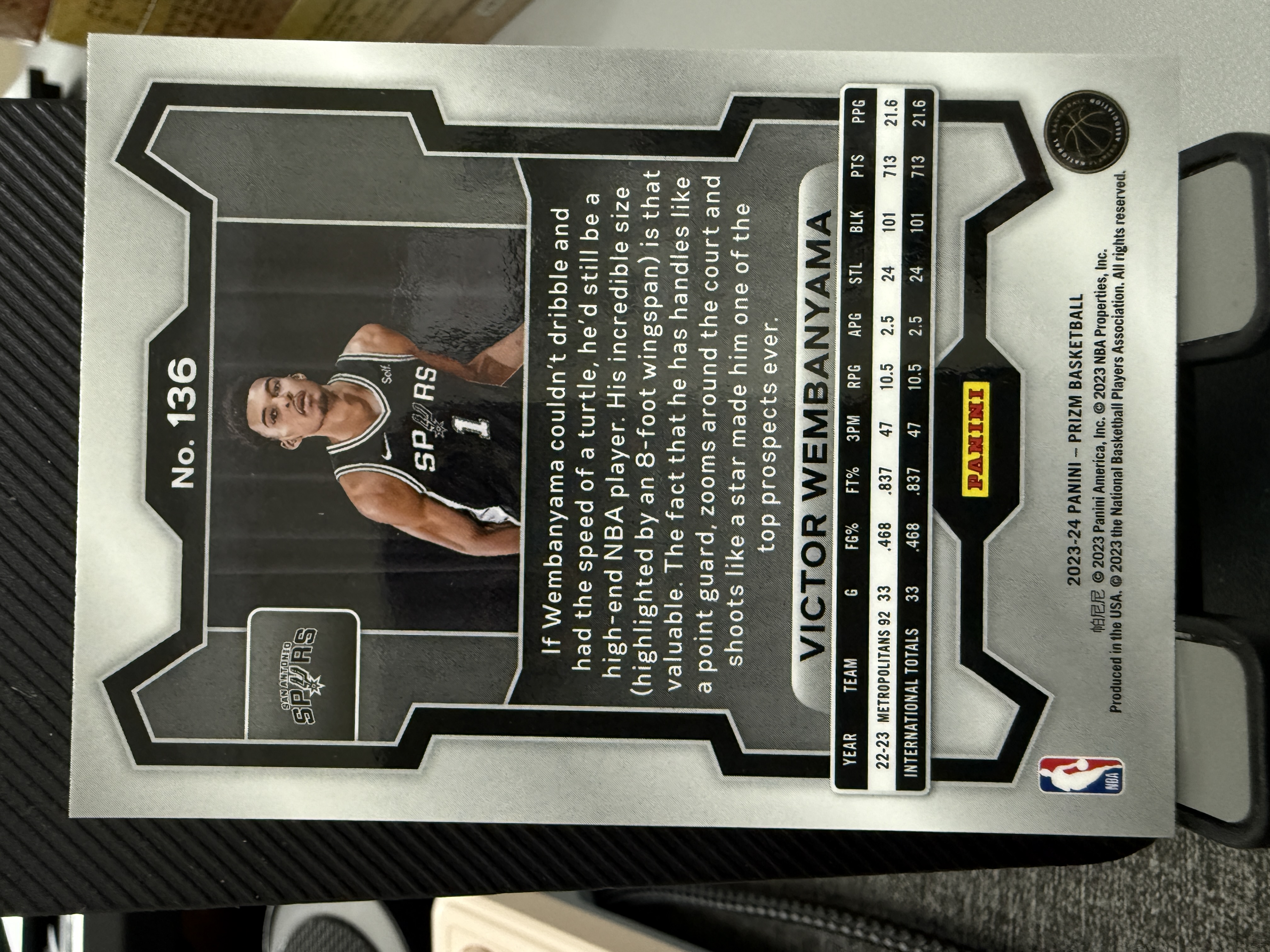 2023-24 Panini Prizm Victor Wembanyama RC PZ 马刺 新秀 新秀年 rc 正 base 文班亚马 天赋炸裂 新赛季表现超巨 联盟当家球星 6 瑕疵如图