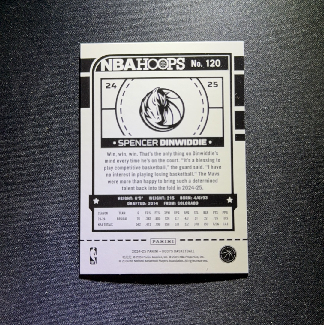 2024-25 Panini NBA Hoops Spencer Dinwiddie 斯潘瑟 丁威迪 独行侠 Artist Proof 18/25编 银折 詹姆斯东契奇队友 卡品如图