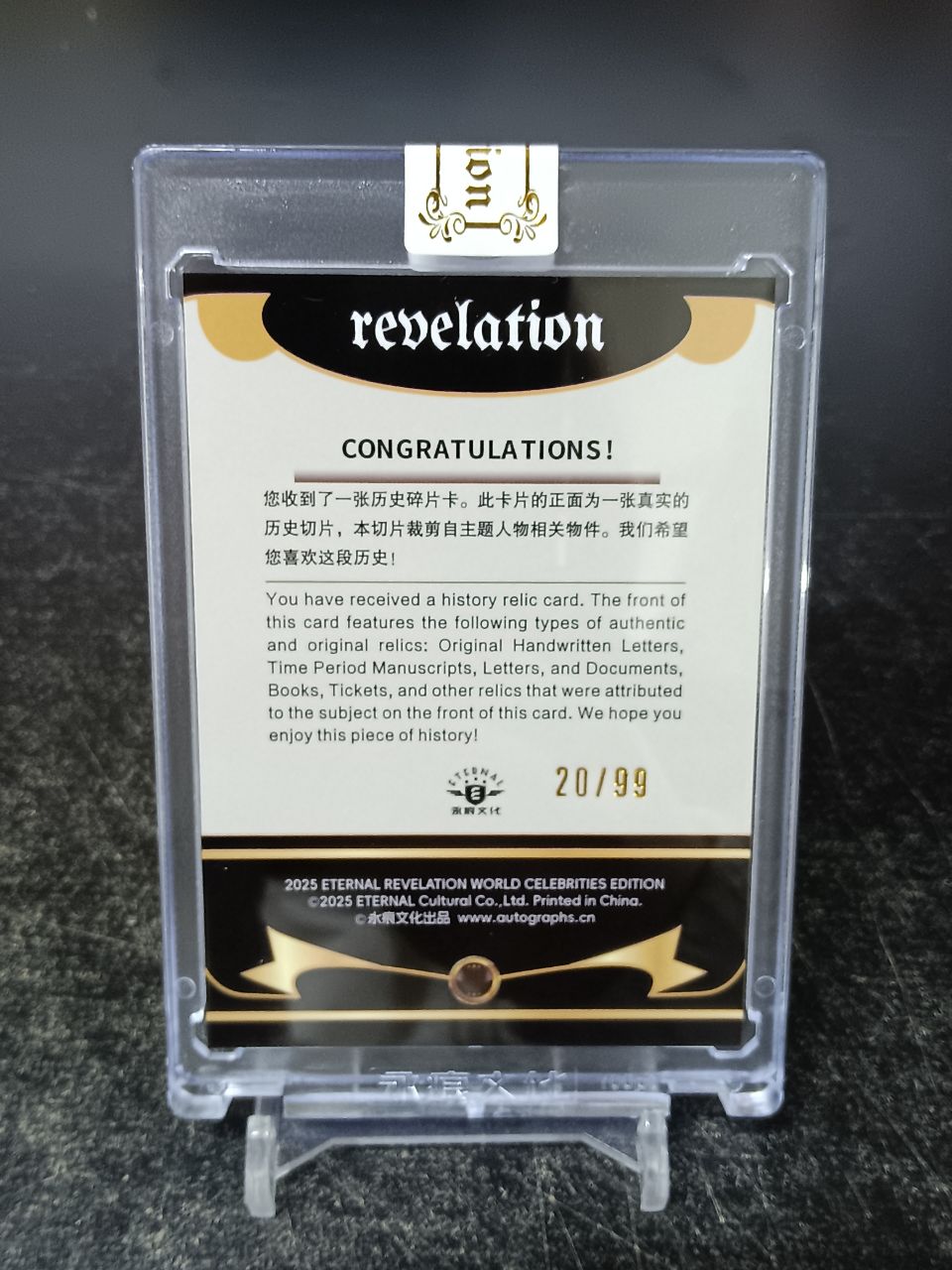 【浩行拍卖 截标预付82%】2025 Eternal 永痕文化 世界名人收藏卡 启示录 雅诗 兰黛 主题人物相关物件 真实历史切片 切割遗迹卡 铜折 折射 20/99编 专收必备 瑕疵看图「葵晴」1031D10牟