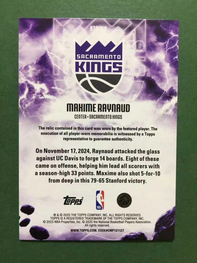 2025 Topps COMPANY Maxime Raynaud RC 元年 新秀 国王 马克西姆 雷诺  50编 金折 GU 落场亲穿物料切割 弗拉格同届 潜力无限 专收必备 卡品如图#张