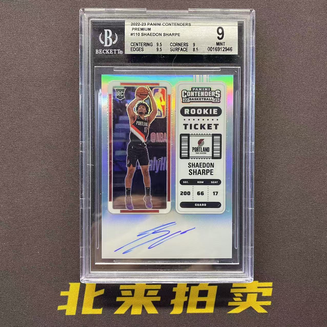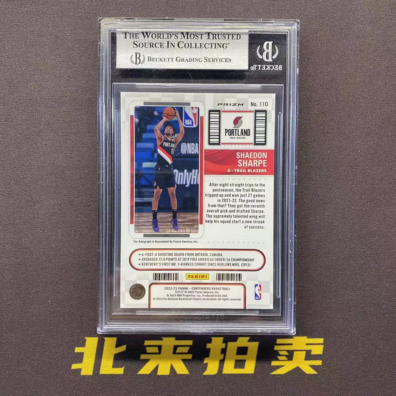 【北来拍卖】2022-23 PANINI CONTENDERS Shaedon Sharpe RC 球票 谢登 夏普 开拓者 新秀 卡签 签字 银折 折射 BGS9分 评级 W1【皮卡丘】1#