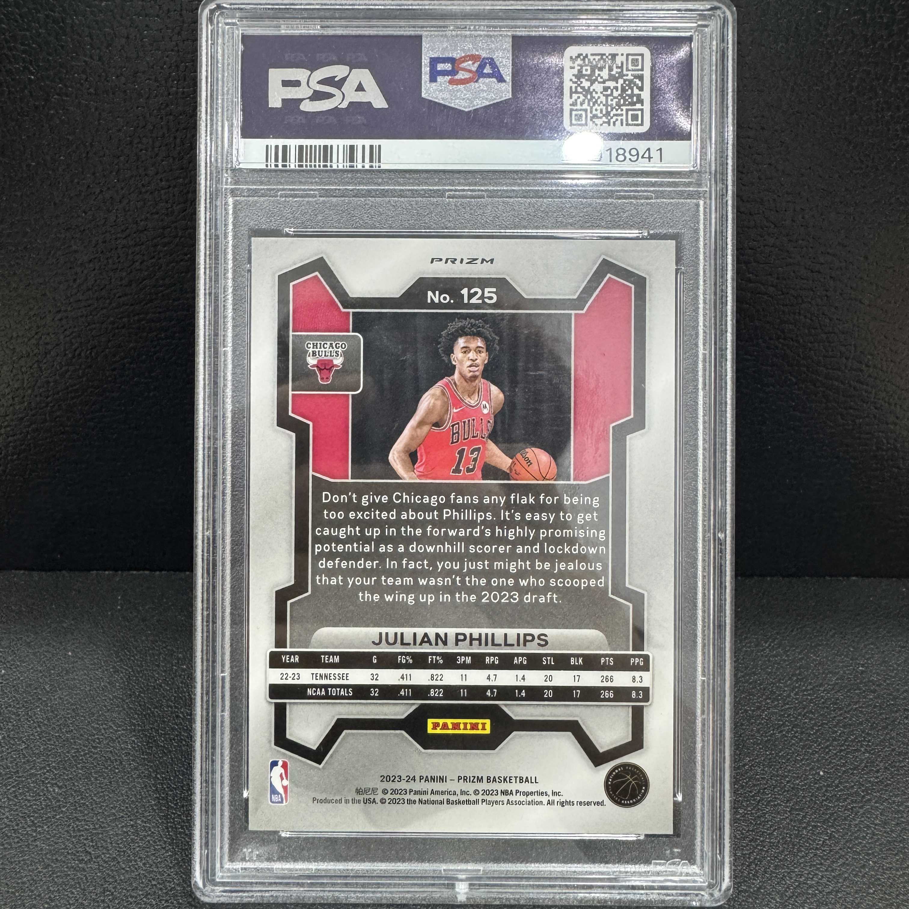 2023 Panini Prizm Julian Phillips RC 朱利安 菲利普斯 新秀 PSA 9分 大比例 虎皮折 pz 公牛 顶级3D 【爪卡收卡】