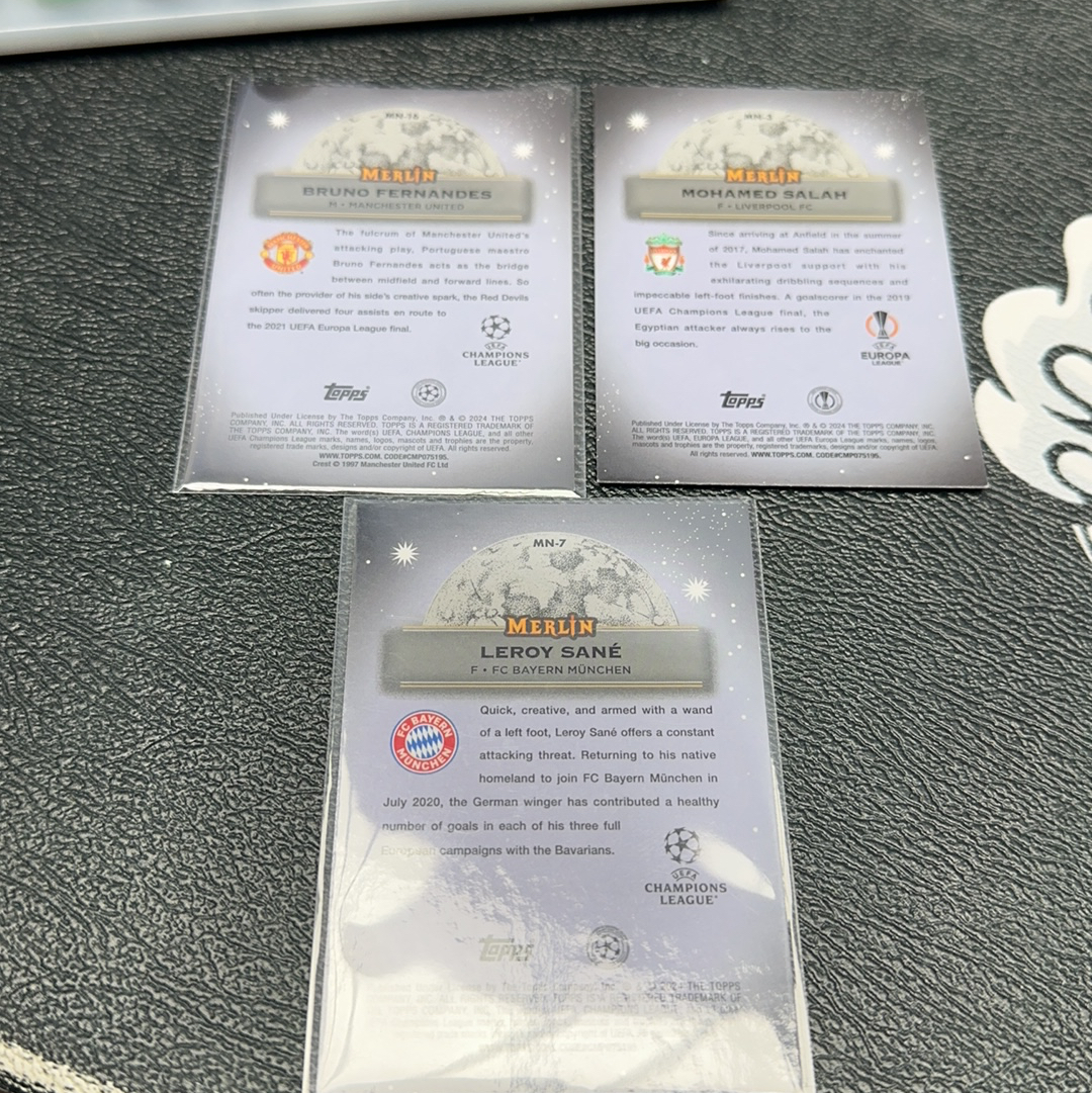 2024 Topps Merlin chrome Bruno Fernandes 【鸡叔拍卖】欧冠 梅林 葡萄牙 曼联 B费 费尔南德斯 萨内 萨拉赫 神秘之夜特卡 共三人 微瑕如图 坤坤