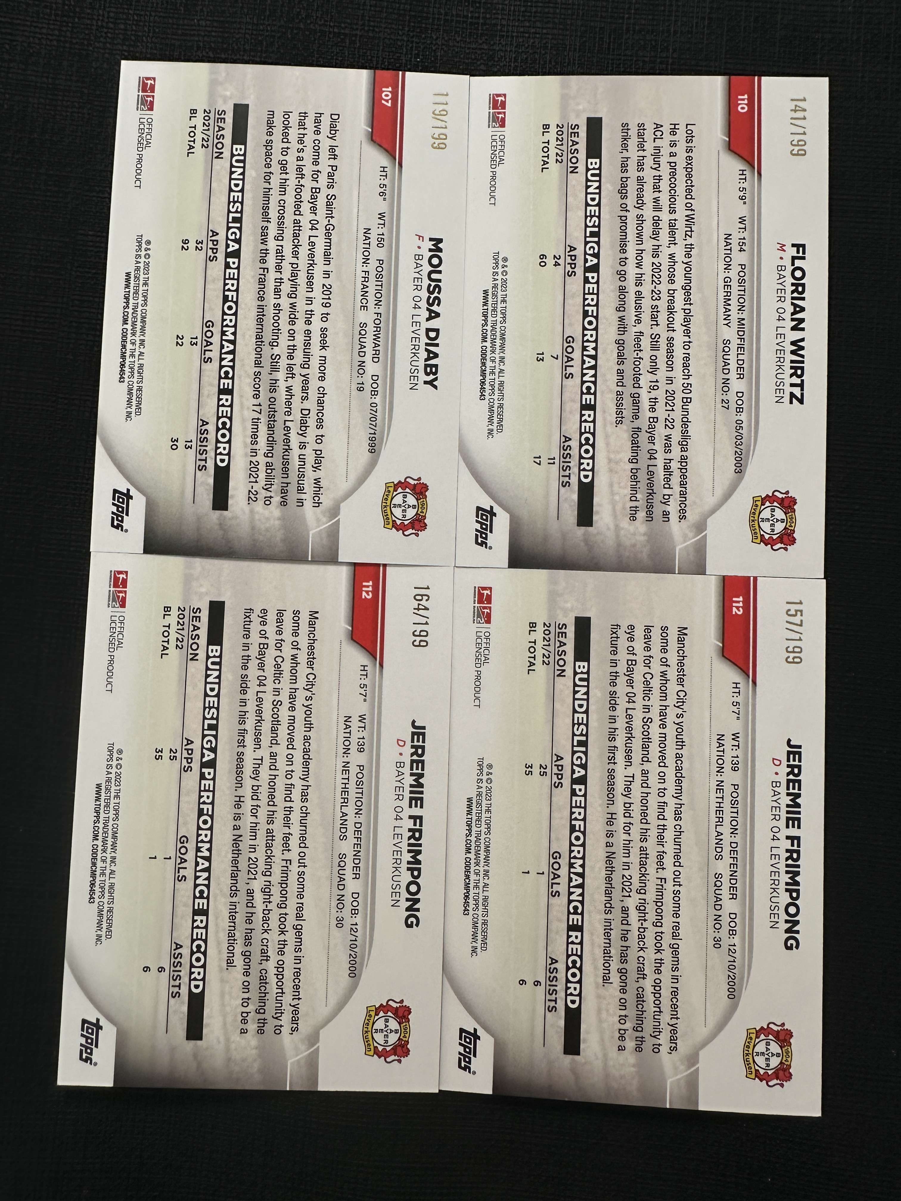 2023 Topps BUNDESLIGA Jeremie Frimpong 德甲 碧玉 勒沃库森 杰里米 弗林蓬x2、迪亚比、维尔茨 /199编 新春折 默认微瑕 卡卡w6