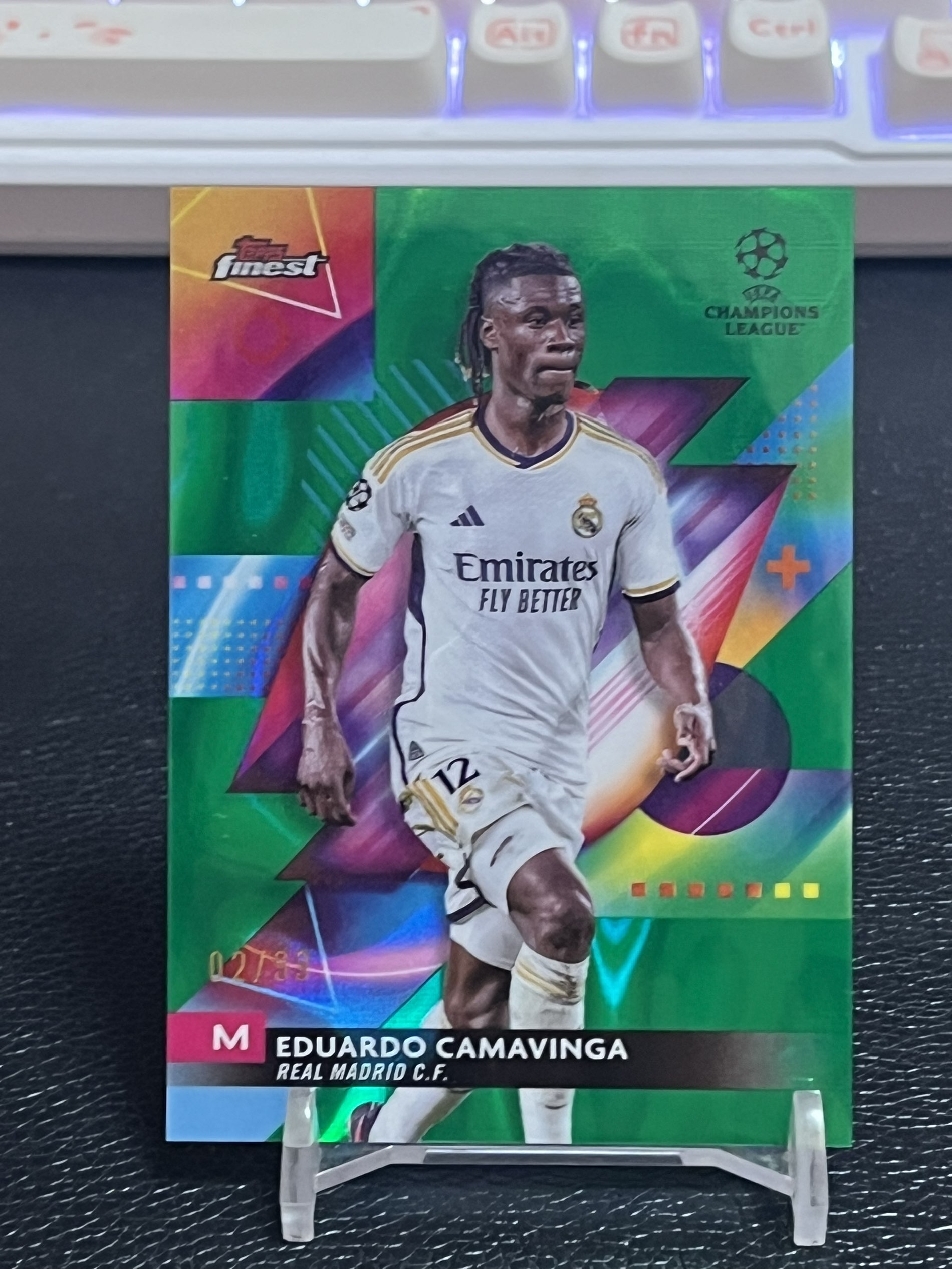 【浩行拍卖 截标预付82%】2024 topps finest eduardo camavinga 欧冠 皇马 爱德华多 卡马文加 卡马温加 绿熔岩折 折射 2/99编 专收必备 瑕疵看图「水色」1031P02緲祺