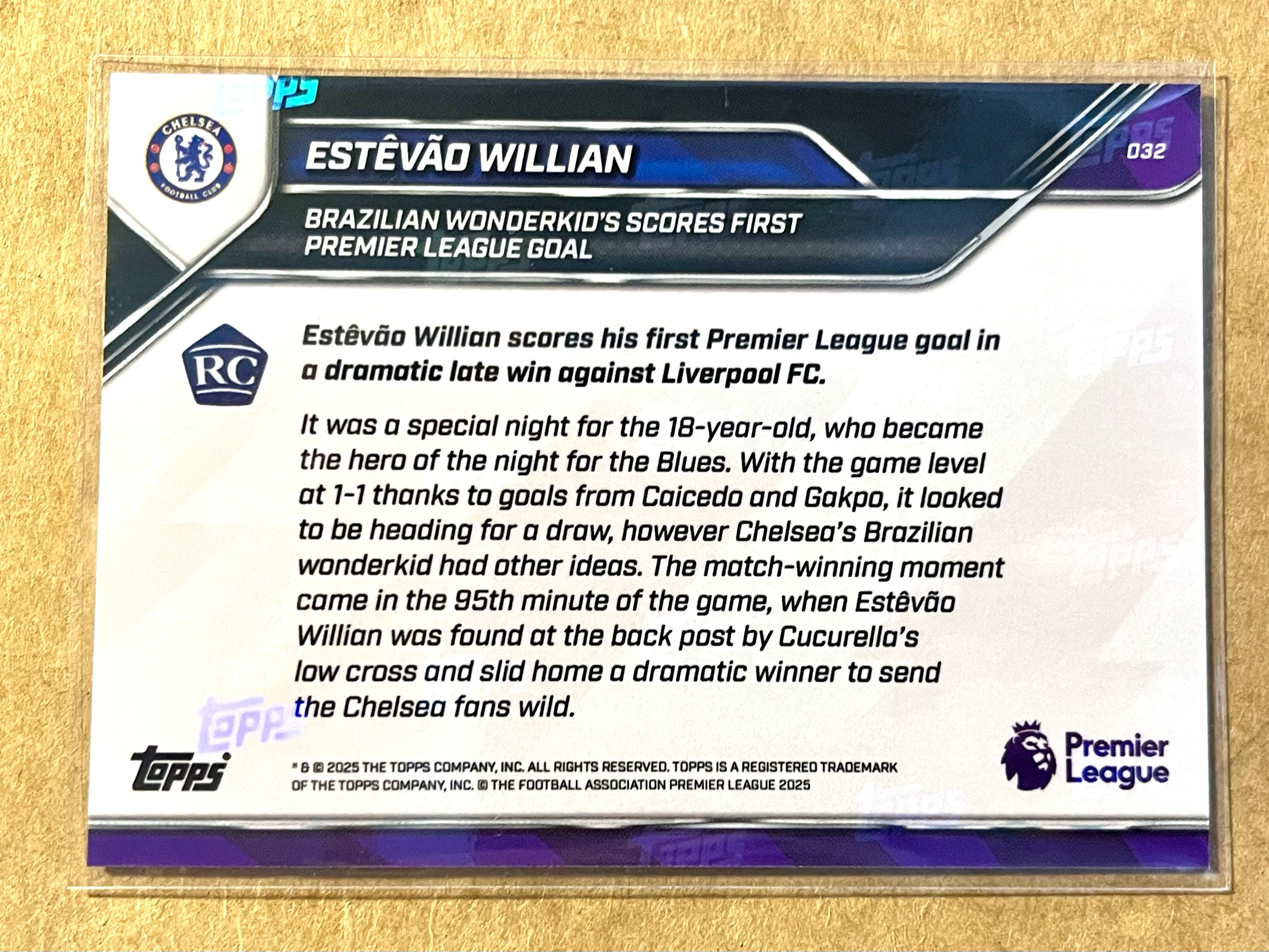 2025 Topps 【蓝矿】 Estevao 埃斯特旺 Topps now系列 RC新秀标 英超 切尔西 父母口中别人家的孩子, 18岁的巴西天才边锋补时阶段绝杀利物浦拿走三分!