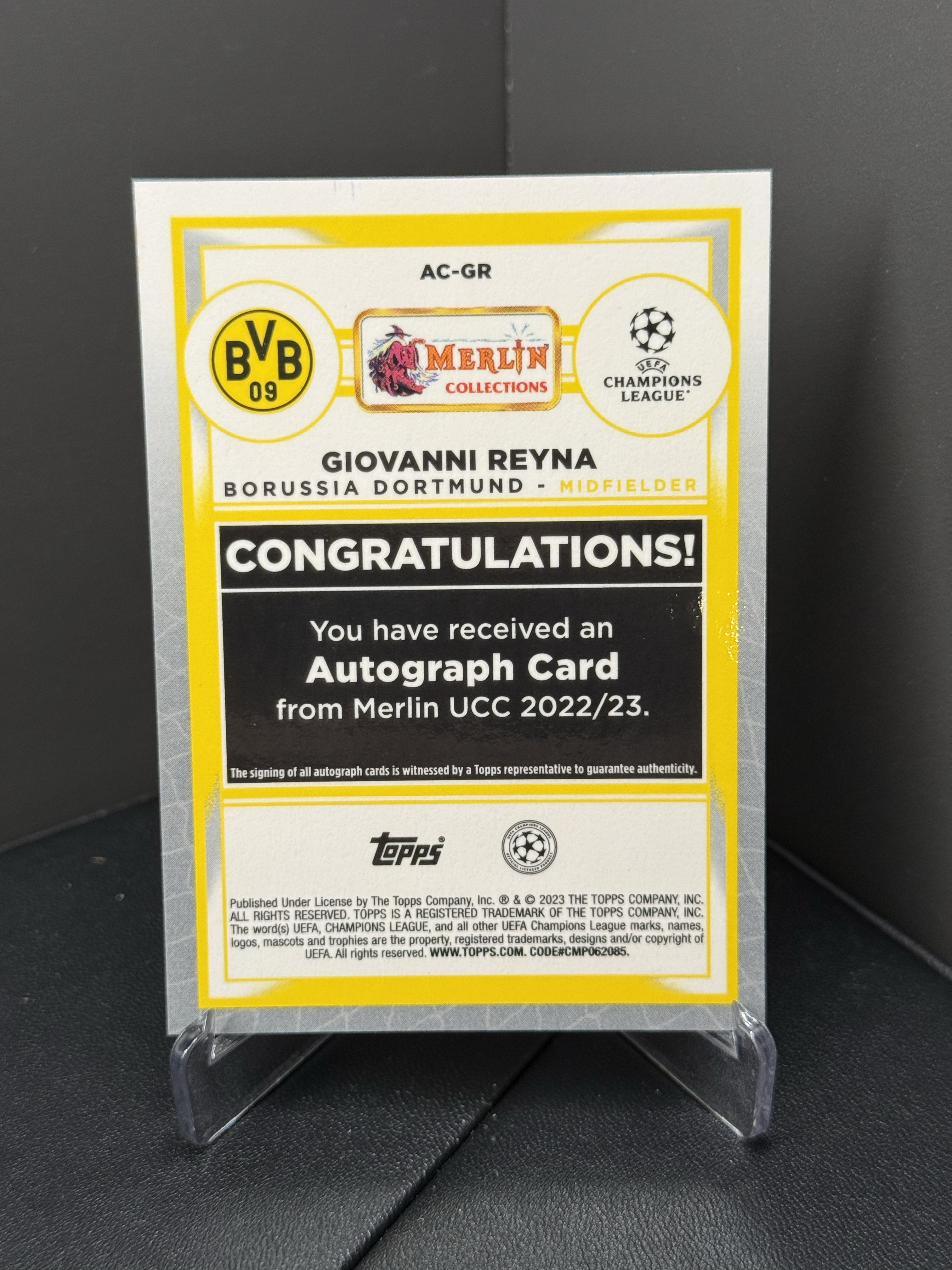 2022-23 Topps Merlin chrome Giovanni Reyna 小雷纳 梅林 完美签字 多特蒙德中场 美国国脚 名宿之子 值得收藏 豪门猎物 瑕疵如图 收藏必备 代拍私信