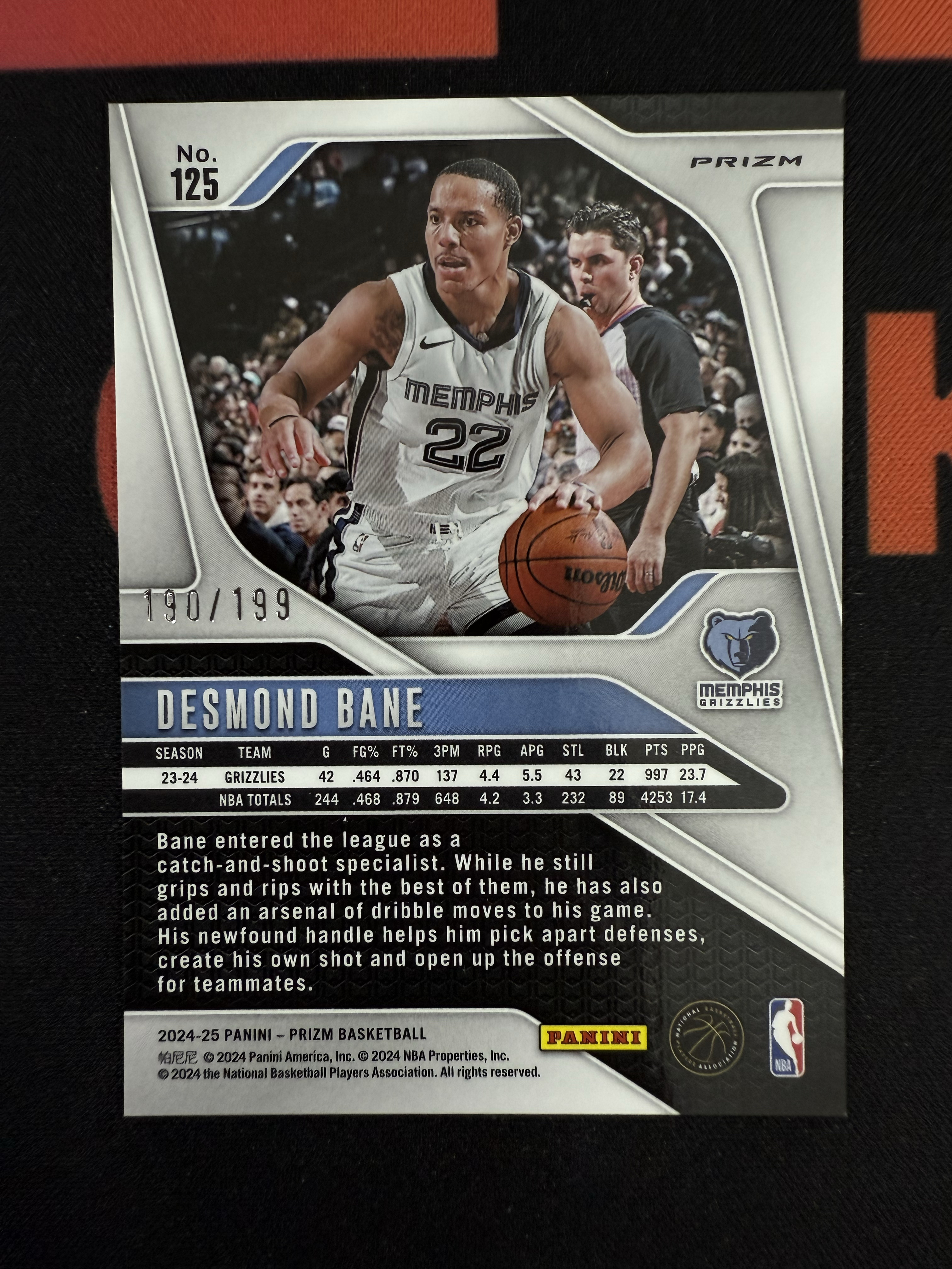 2024-25 Panini Prizm Desmond Bane 灰熊 戴斯蒙德贝恩 pz 蓝折 小钢炮 190/199遍 瑕疵如图 收藏必备