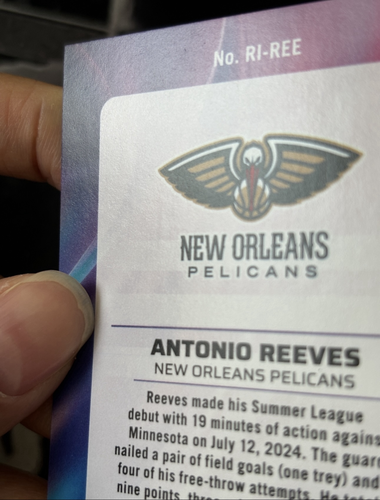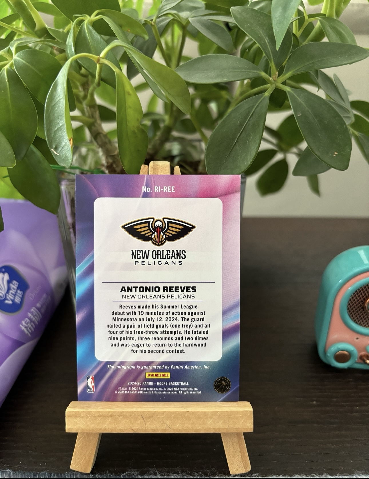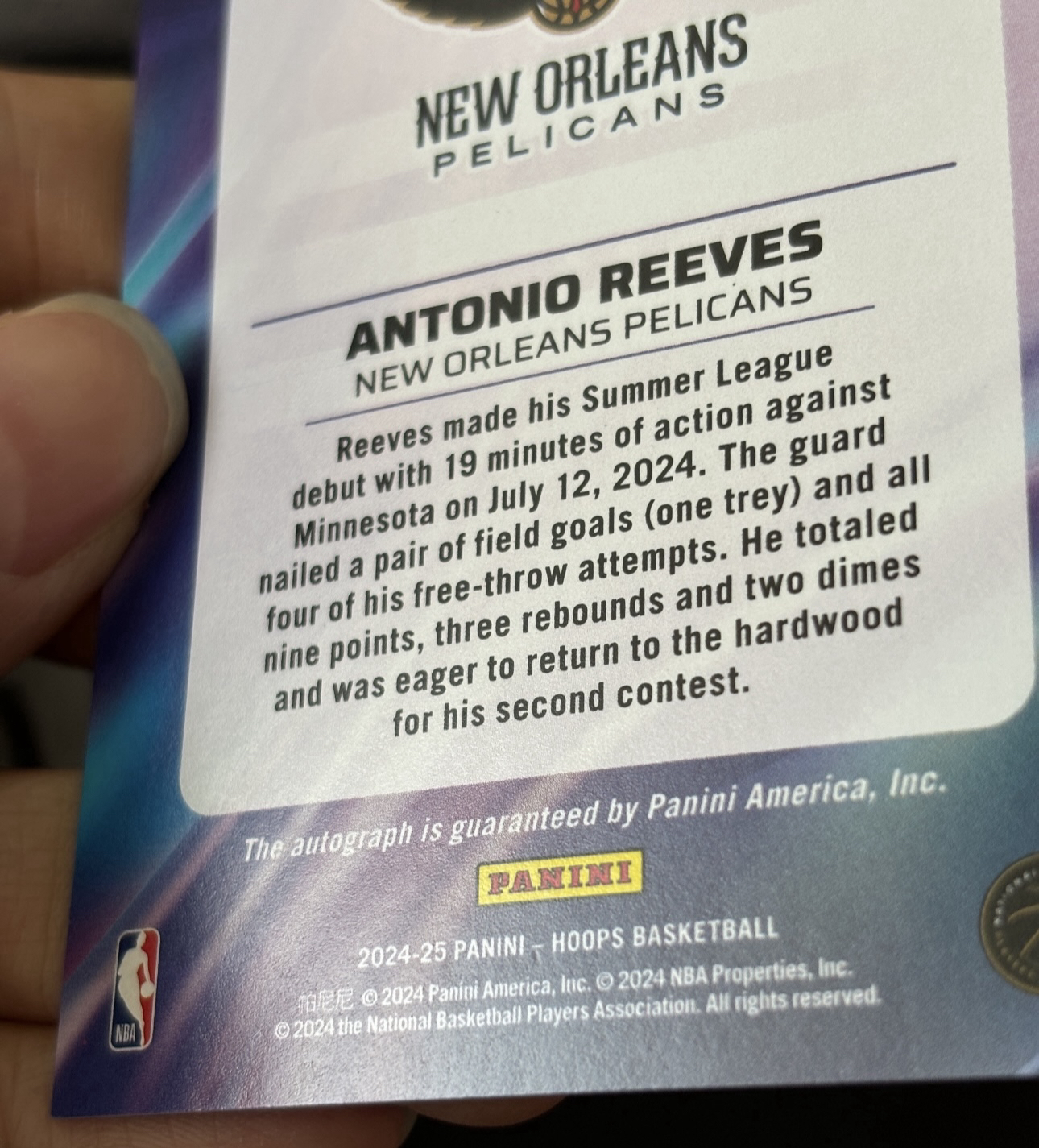 2024-25 Panini NBA Hoops Antonio Reeves 《快乐卡舍接寄拍》鹈鹕 安东尼奥 里夫斯 新秀 闪卡 背号签 签字墨迹清晰 hoops系列 瑕疵见图 投资收藏必备