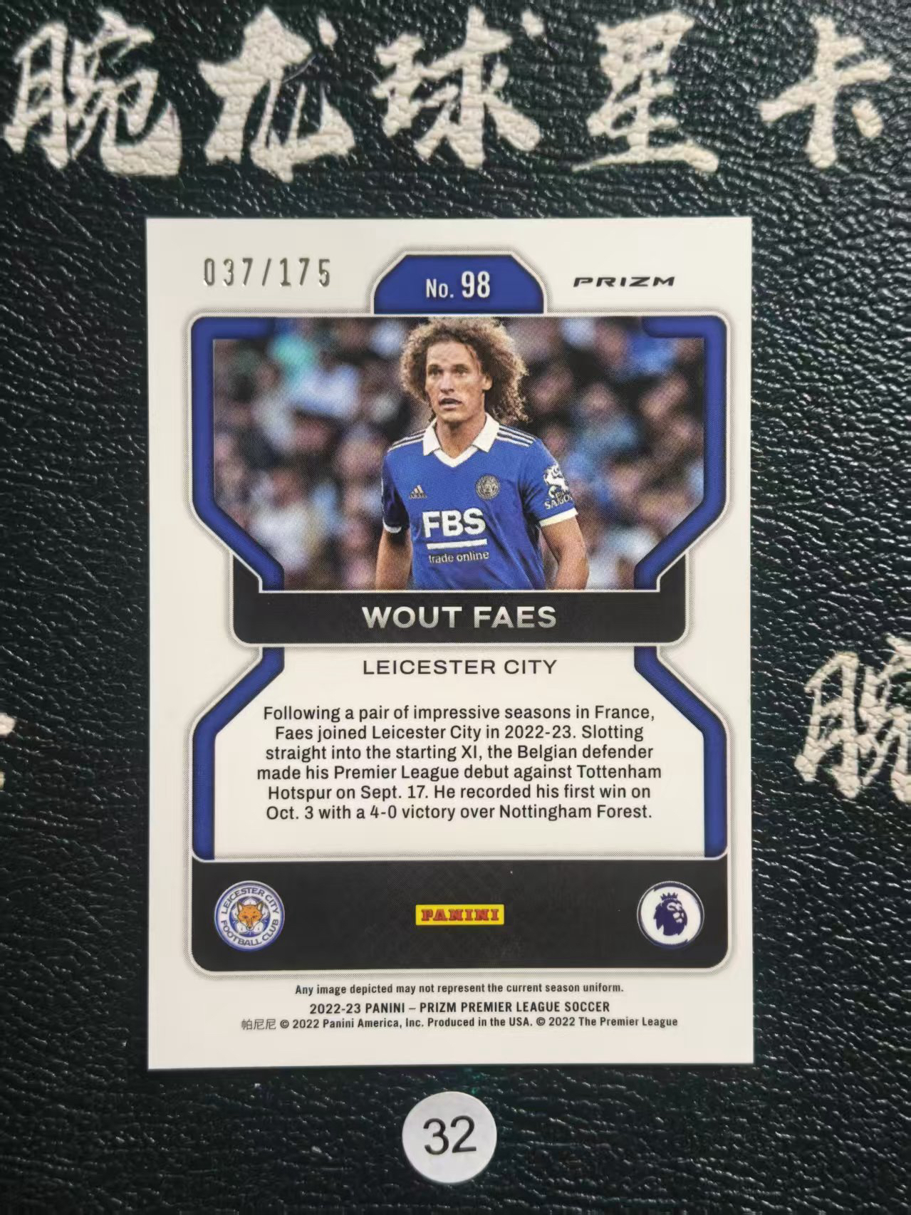 2022-23 【腕龙拍卖 接代卖】 腕龙E总AJ1 Panini Prizm 英超 PZ 沃特 费斯 莱斯特城 蓝折 37/175编 WOUT FAES 卡品如图 收藏必备