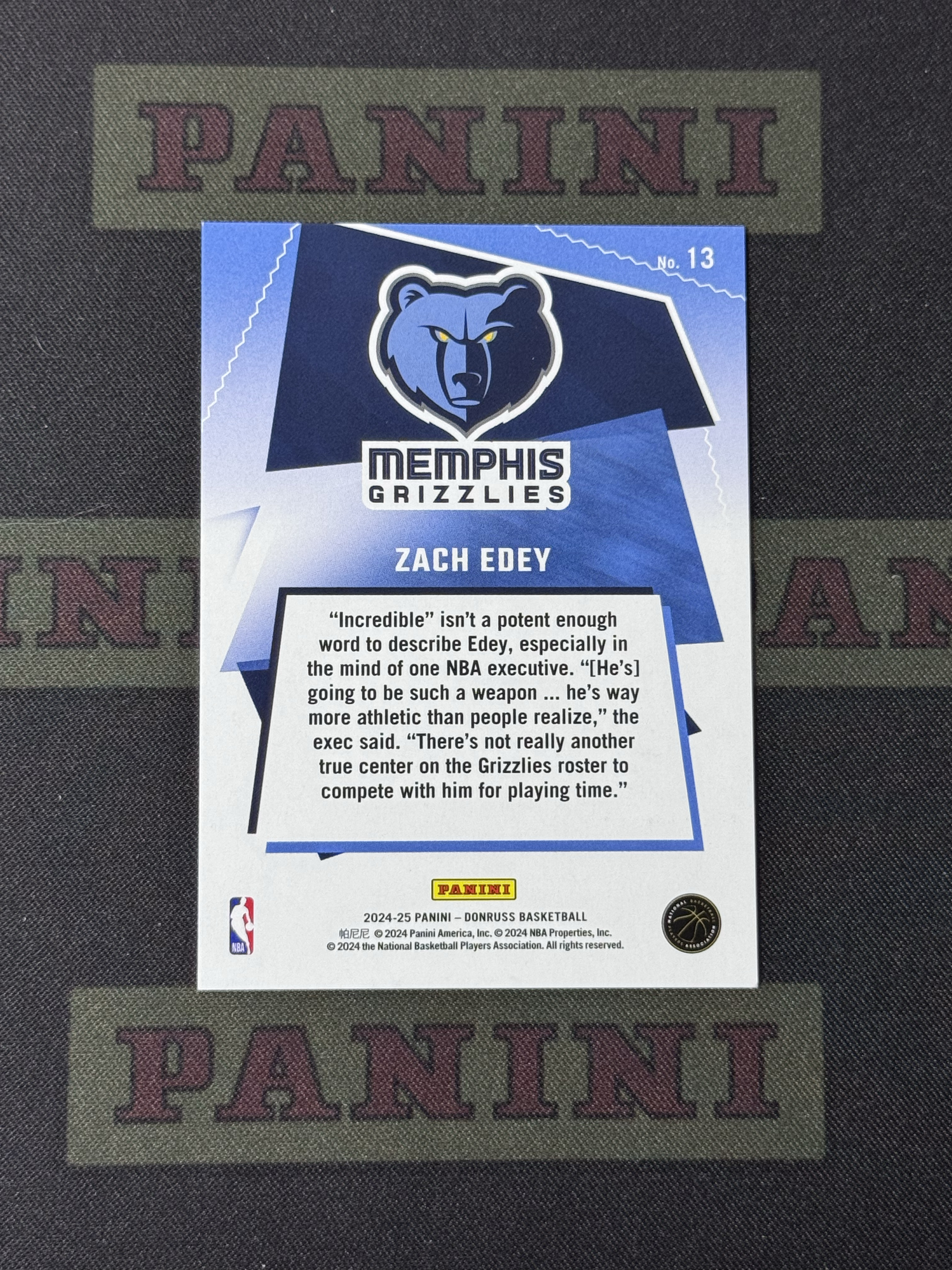 2024-25 Panini Donruss Zach Edey 【卡掌柜代拍】灰熊 扎克 埃迪 周志豪 新秀 rc 莫兰特队友 带编 特卡 07/25编 折射 未来可期 瑕疵看图收藏必备 加号