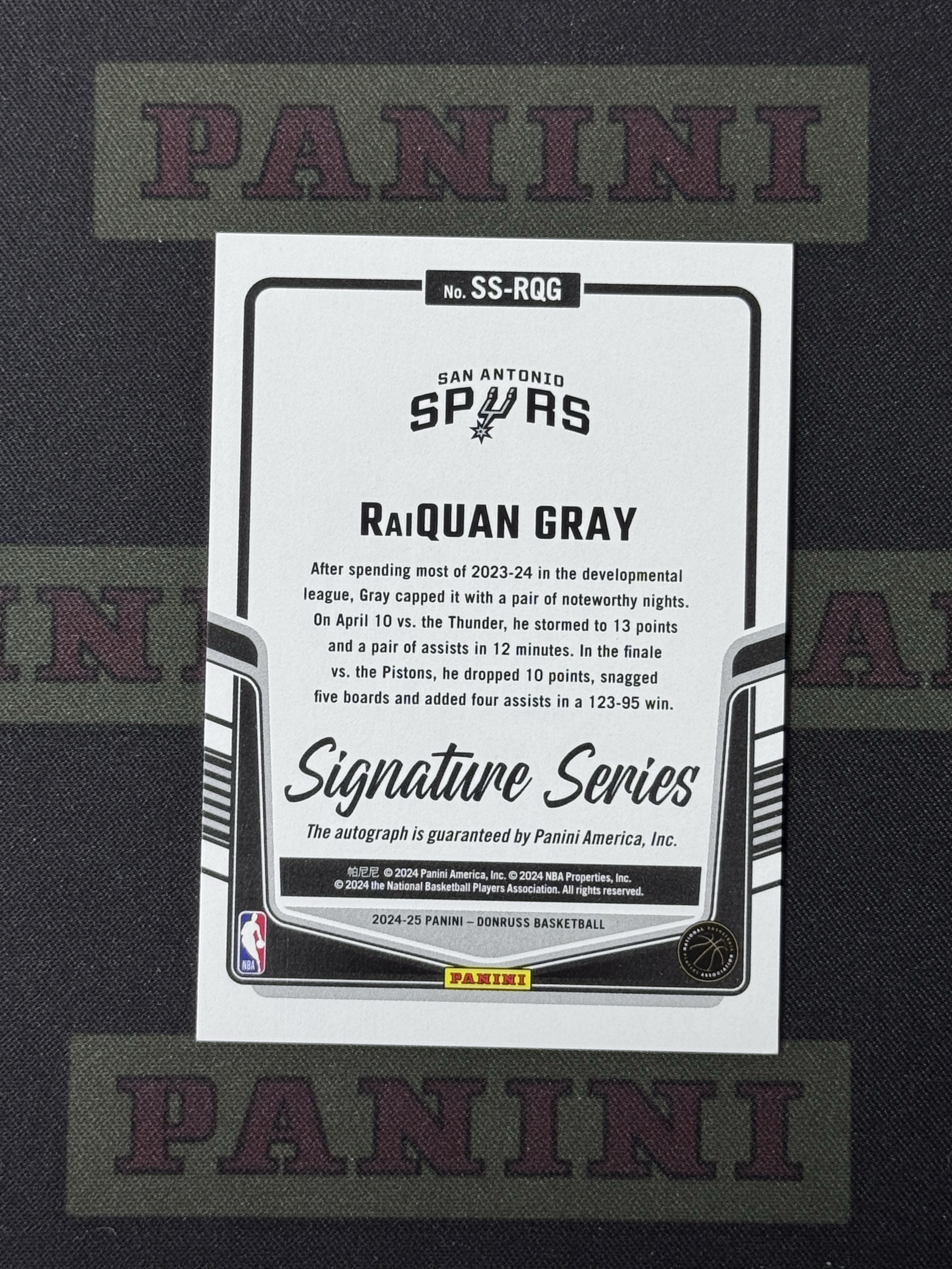 2024-25 Panini Donruss Stuart Gray 【卡掌柜代拍】马刺 雷匡 格雷 ss签 签字 福包必备 未来可期 瑕疵看图 收藏必备 句号
