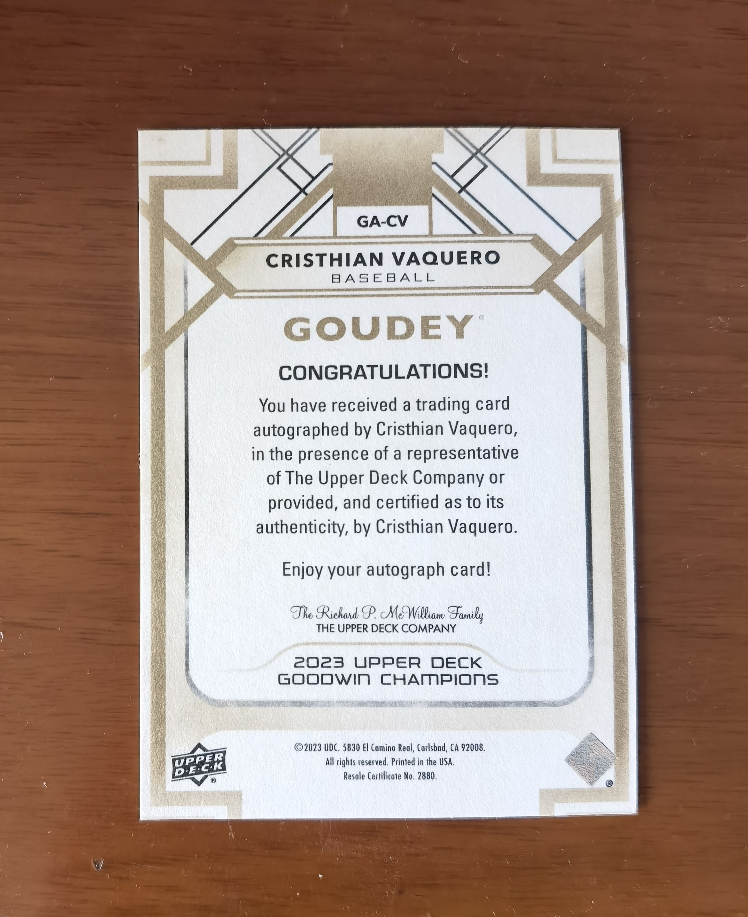 2023 Upper Deck Goodwin 古德温冠军 棒球 RC新秀 Goudey 签字 Cristhian Vaquero 格拉斯哥流浪者队 克里斯蒂安·瓦奎罗 新秀 签字 卡签 签字