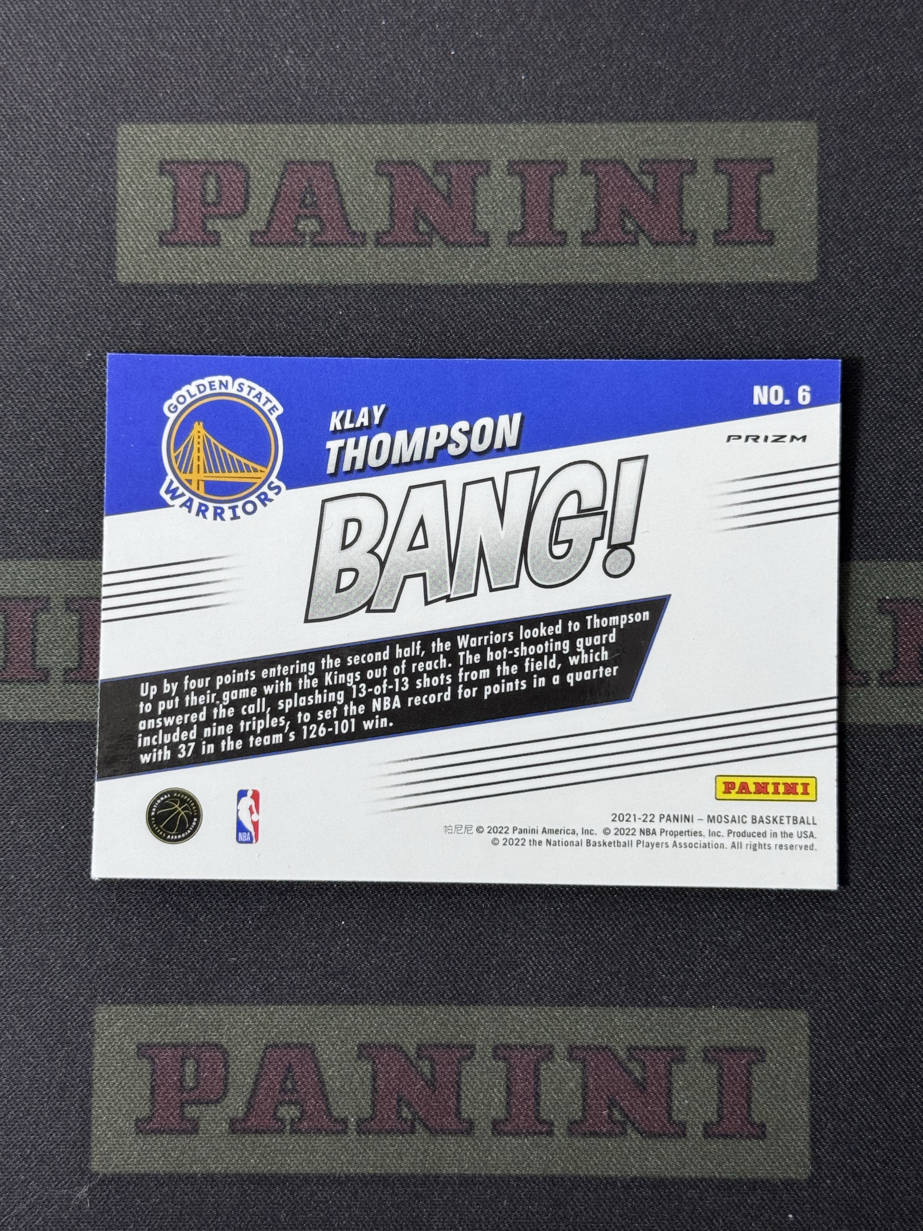 2021-22 Panini Mosaic Klay Thompson 【卡掌柜代拍】勇士 克莱 汤普森 佛祖 水花兄弟 欧文库里东契奇队友 折射 绝杀特卡 Bang 特卡 收藏必备 卡品如图