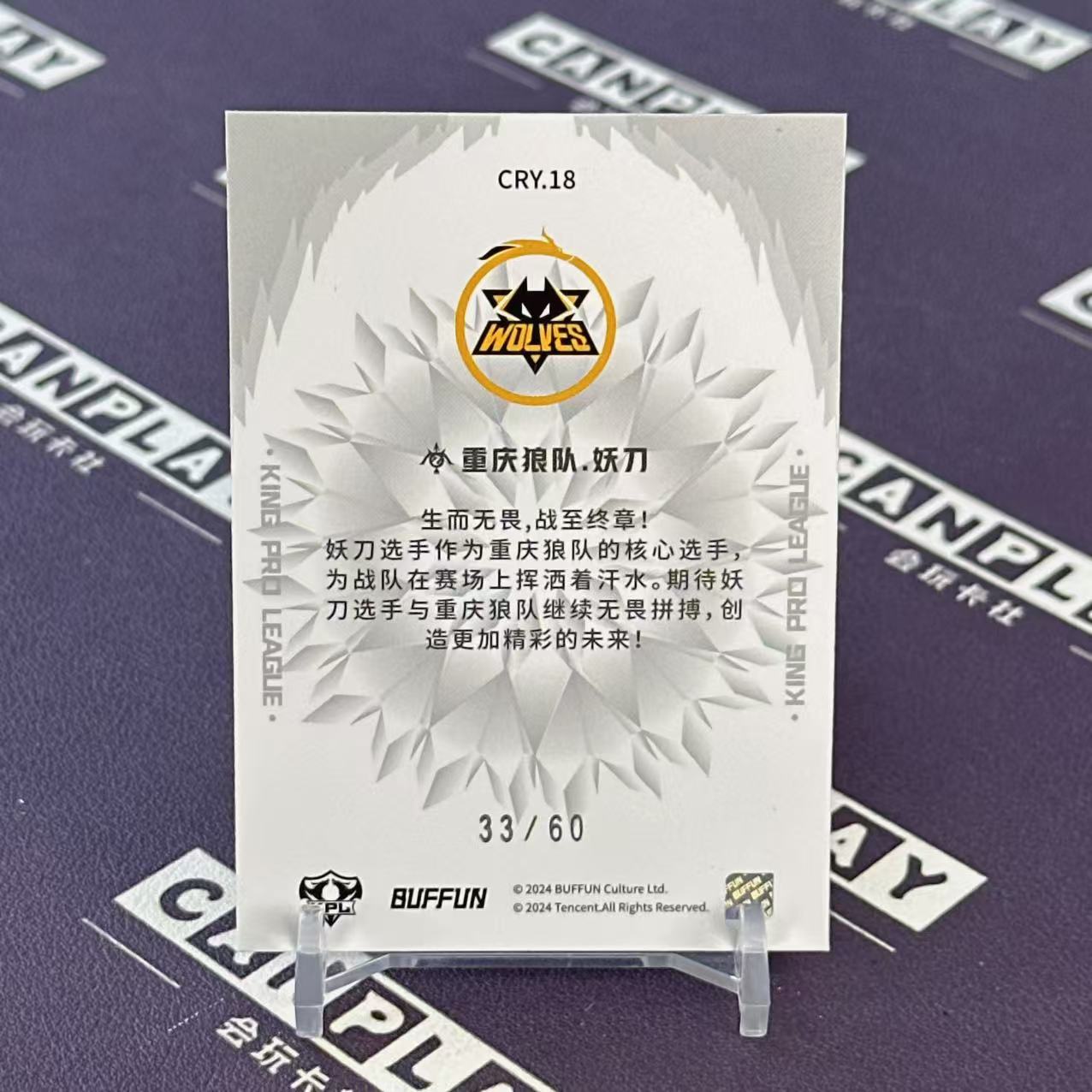 2024 Buffun KPL 妖刀 【会玩卡社】王者荣耀 KPL选手卡 2024光启 重庆狼队.妖刀 晶闪特卡 33/60编 HW2588