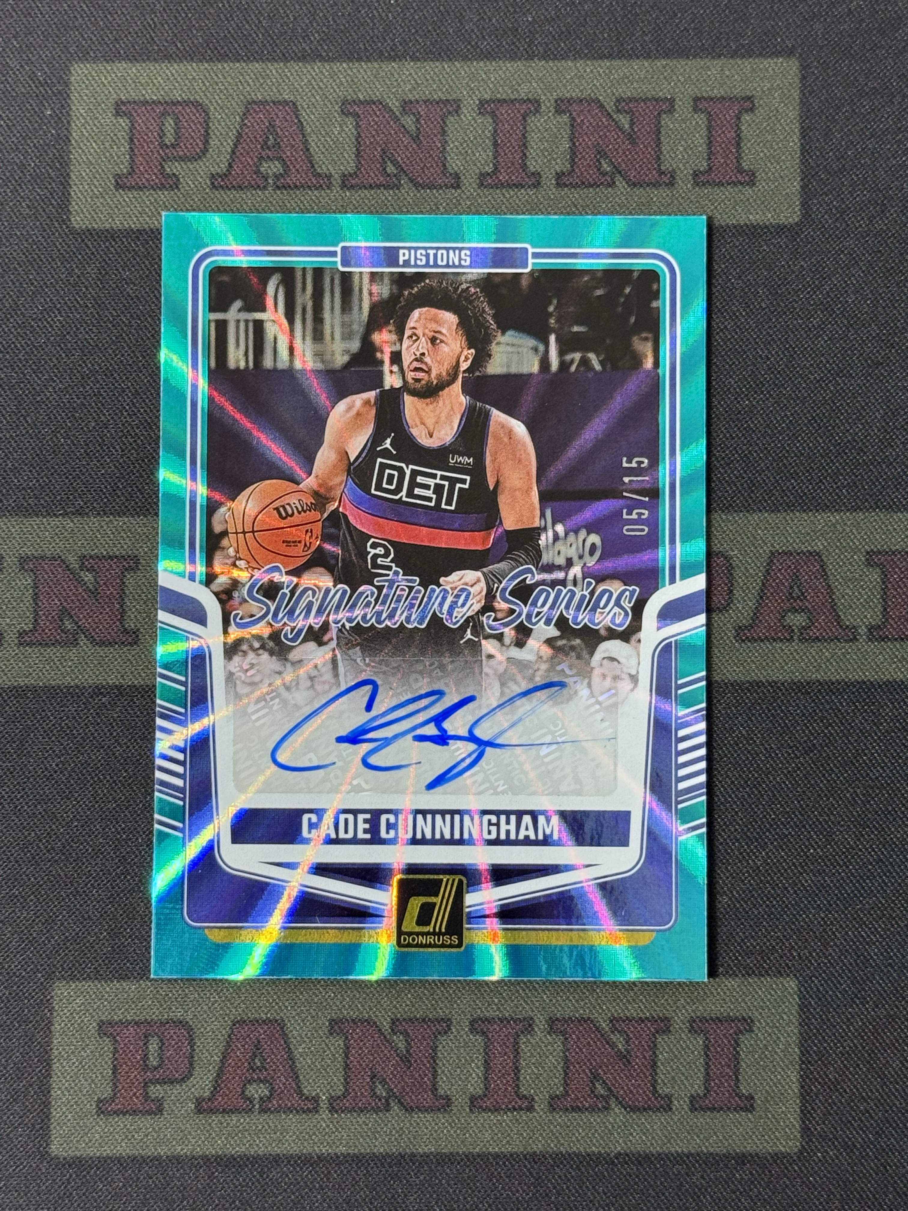 2024-25 Panini Donruss Cade Cunningham 【卡掌柜代拍】活塞 凯德 康宁汉姆 坎宁安 cc 美本东契奇 折射 签字带编 05/15编 球队基石 瑕疵看图 收藏必备