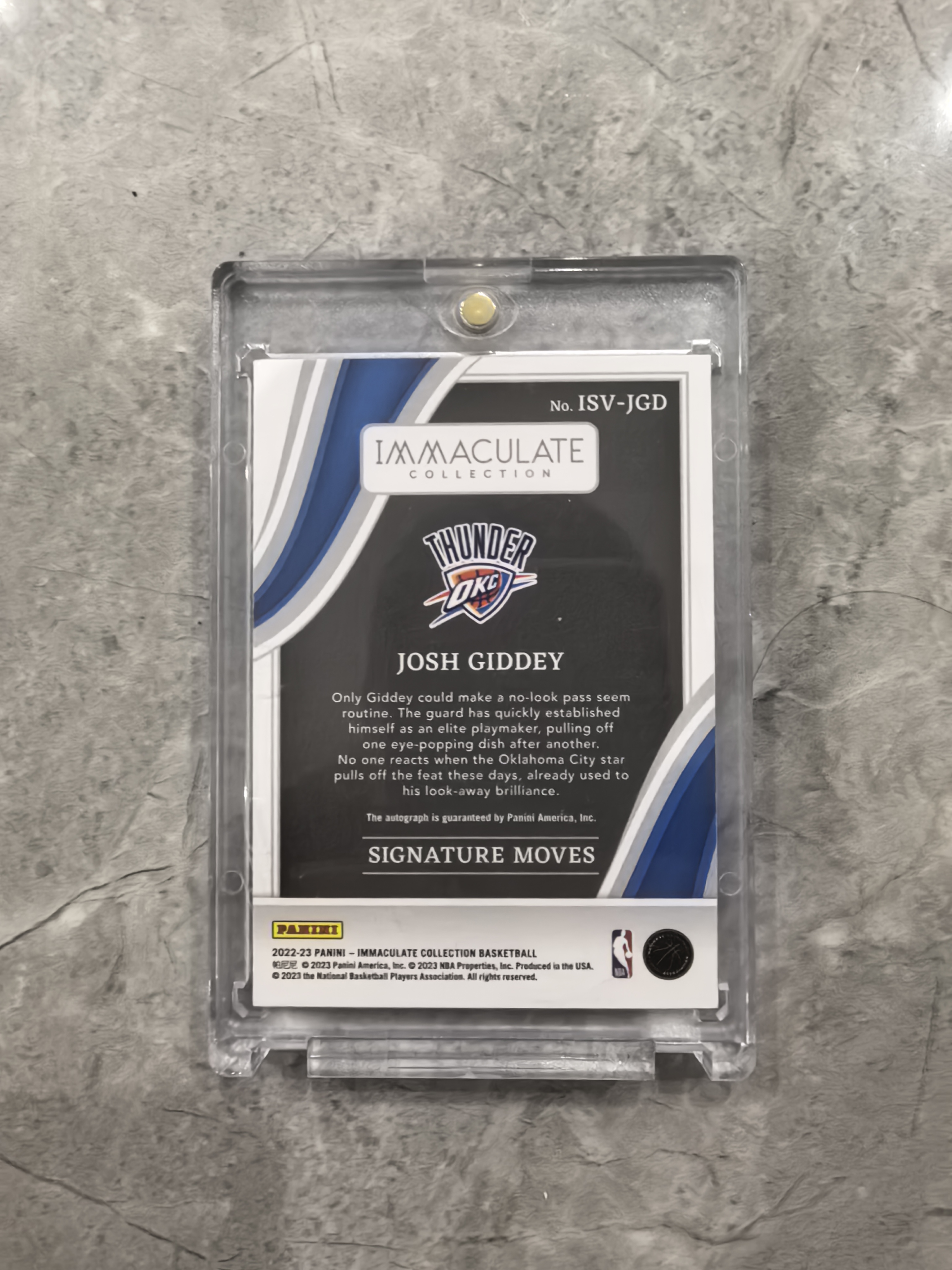 2022-23 Panini Immaculate Josh Giddey 约什 吉迪 signature moves 招牌动作 99编 镜面金闪 卡签 雷霆 签字 微瑕如图