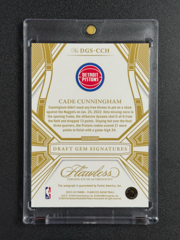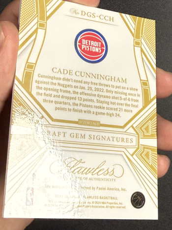 卡品如图请看仔细,照片很清楚!请看清楚再拍!天猫折射系列以及HOOPS折射系列经常会有一道折射横线是印刷问题不属于卡品残次范畴,介意者请勿拍。厚卡有轻微白边属于正常现象!白边白角;镜面、折射系列等卡面划痕、印刷自带痕迹或覆膜不平起泡等卡片自身问题均为通行品。IMM,NOIR,金书等厚卡系列卡品一般,边角经常有小问题介意勿拍!老卡有白边白角属于正常卡品,镜面卡签字经常有横条竖条印刷划痕属于正常通行品相,所有卡有疑问出价前均可以发站内信或者微信索要细节图!评级卡砖上的划痕和破损以及评级砖内的卡有卡品问题一律不属于品相问题!各种prizm base以及银折表面的轻微划痕为正常卡品,要评级追求金标和10分者请直接购买金标和10分评级卡。需要了解卡品细节,也欢迎联系客服询问。