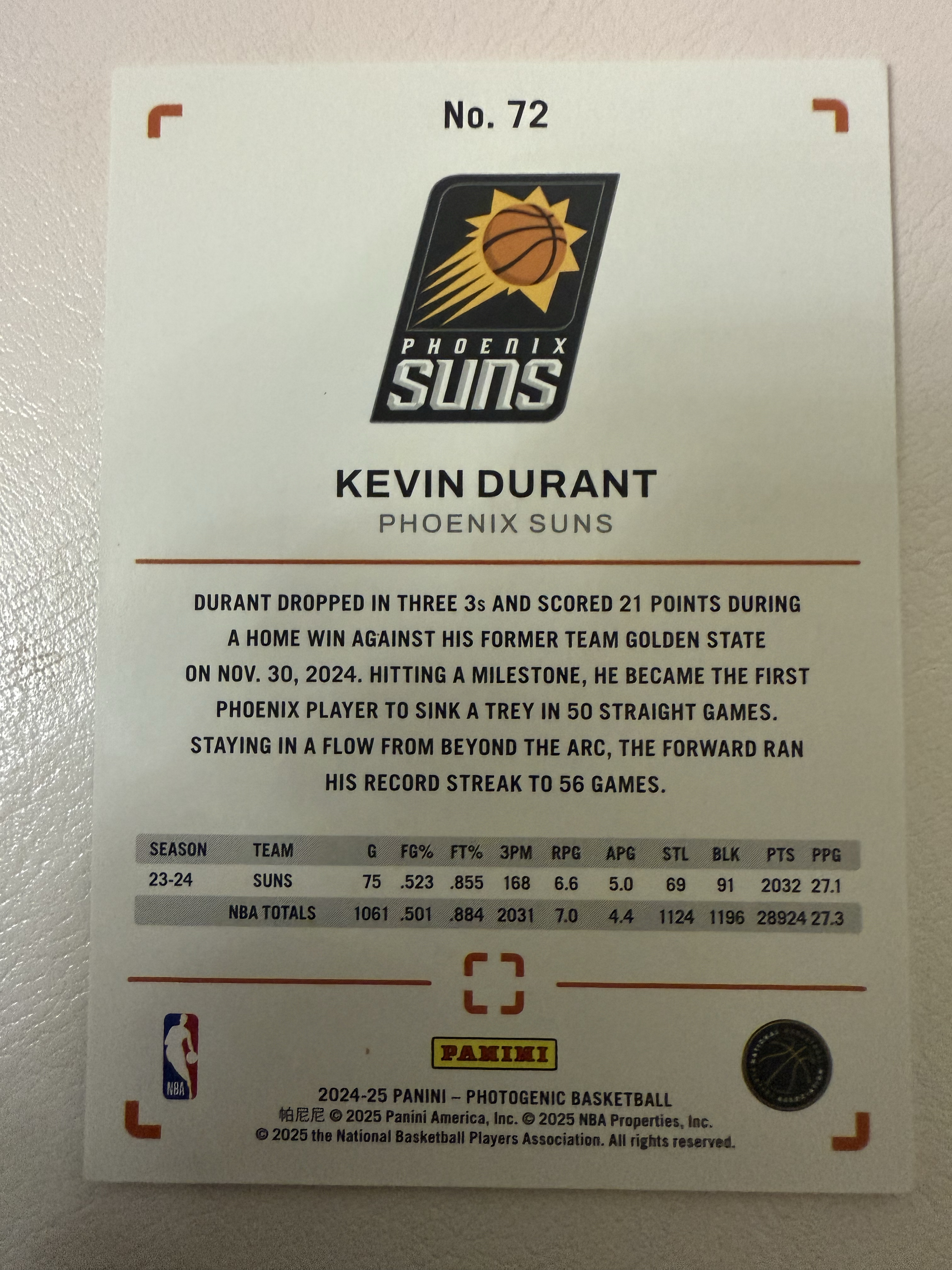 2024-25 Panini PaniniPhotoGenicNBA Kevin Durant 凯文 杜兰特 太阳 上镜 卡品如图