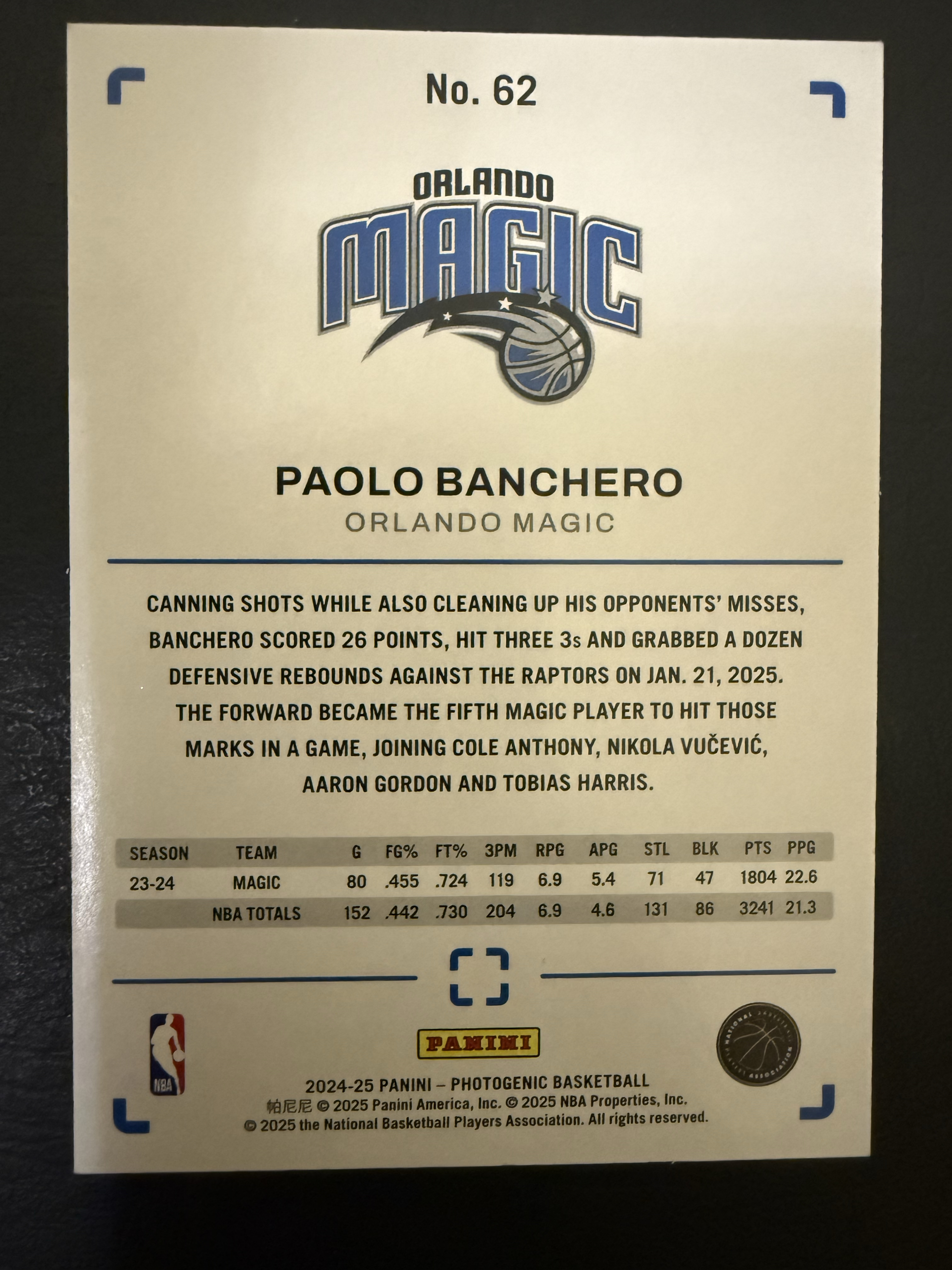 2024-25 Panini PaniniPhotoGenicNBA Paolo Banchero 上镜 保罗 班凯罗 卡品如图