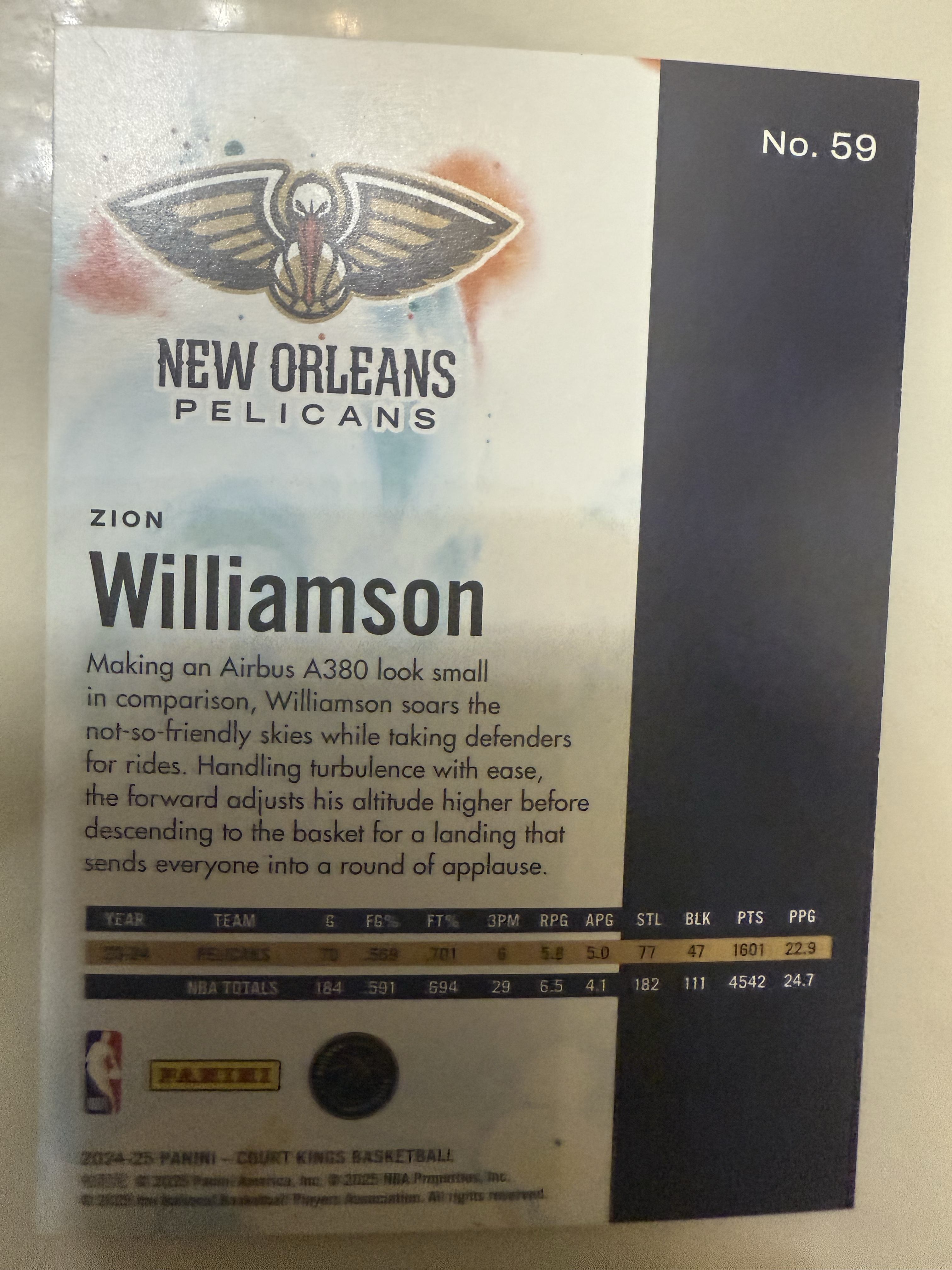 2024-25 Panini Court Kings Zion Williamson 锡安 威廉姆斯 胖虎 鹈鹕 油画 卡品如图