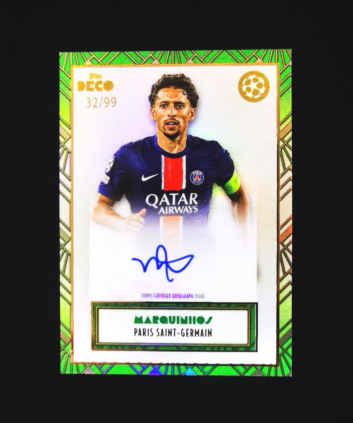 2024 Topps Deco Marquinhos 欧冠 德科 大巴黎 巴西 马队 马尔基尼奥斯 32/99编 签字 绿折签 完美签 防守铁闸 功勋队长 关键先生 欧冠冠军 实卡精美 专收必备【圣1】