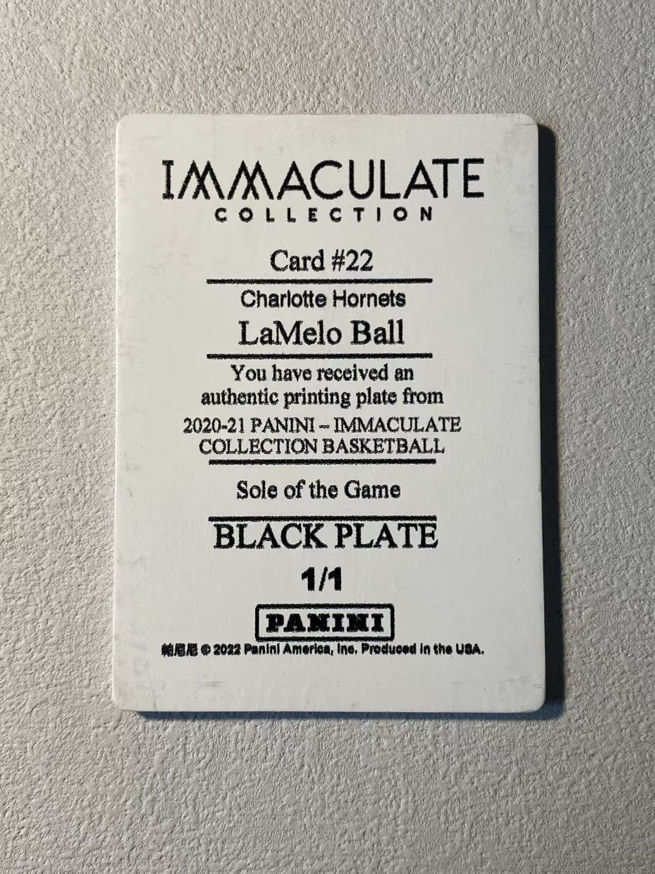 2020-21 Panini Immaculate LaMelo Ball RC imm 黄蜂 新秀rc 拉梅洛 鲍尔 三球 1/1编 1of1 模板 印刷板 稀有 收藏必备