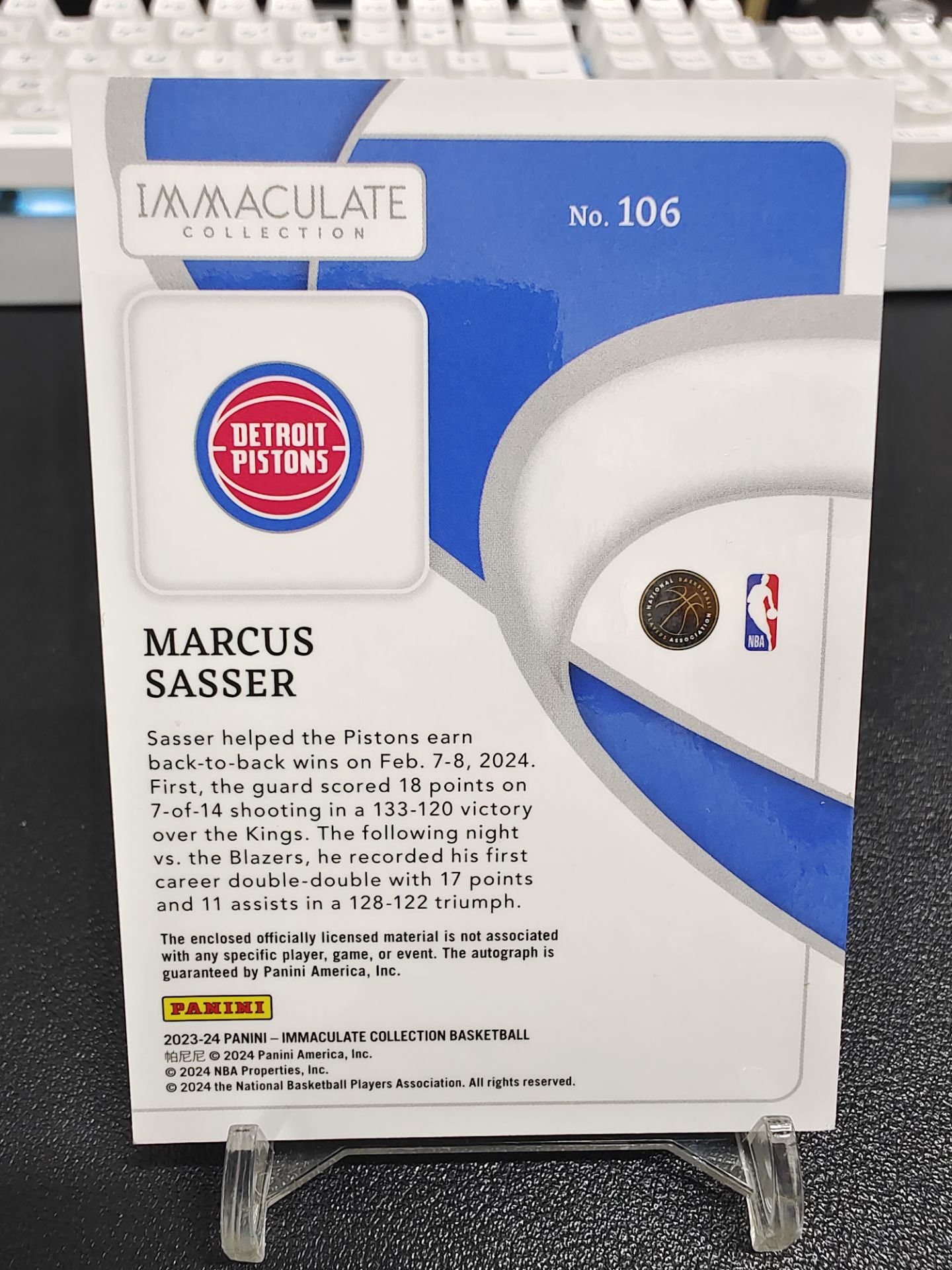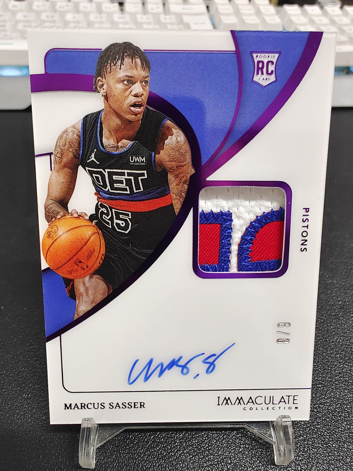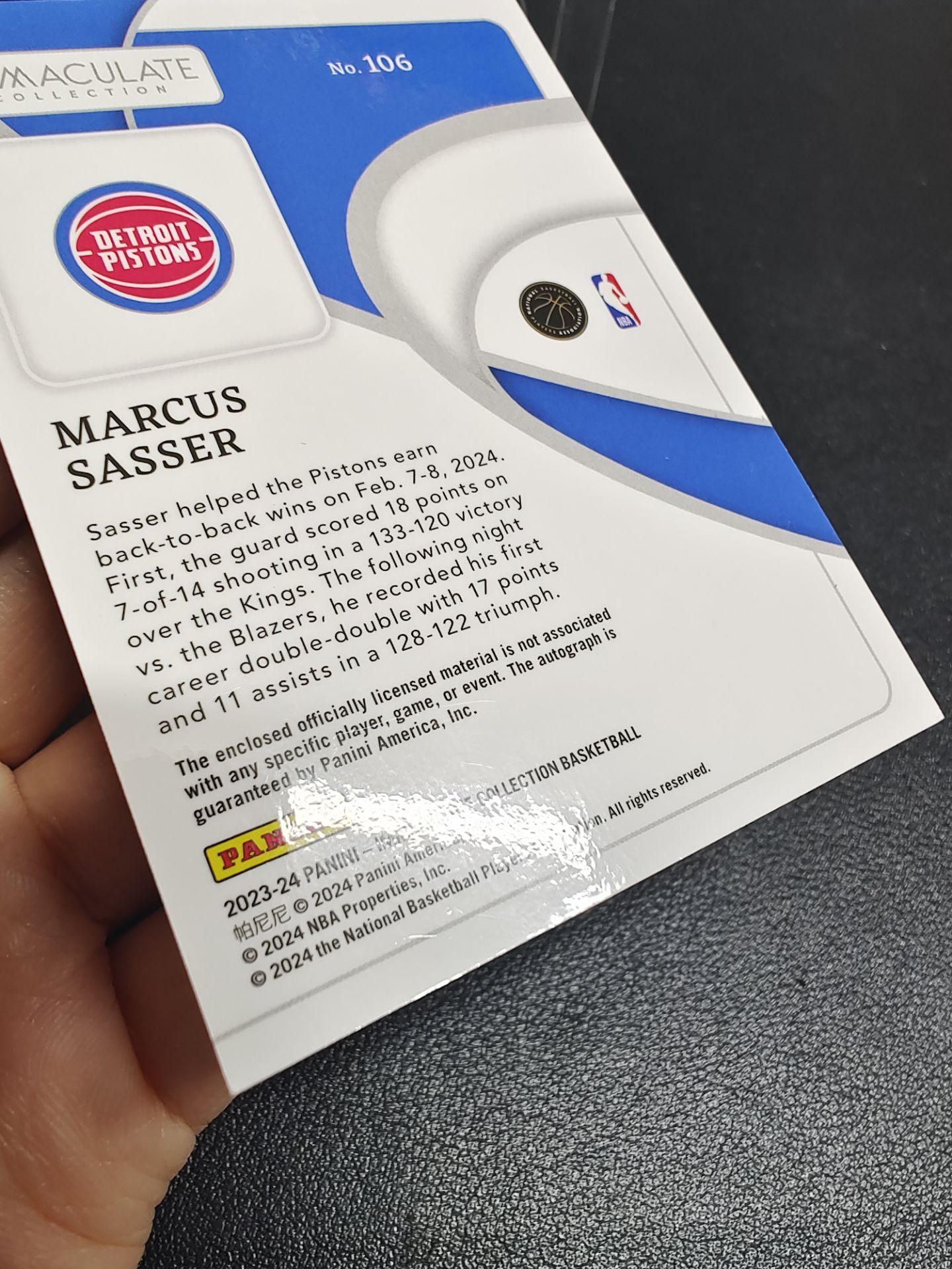 【浩行拍卖 截标预付82%】2023-24 panini imm Marcus Sasser 活塞 马库斯 萨瑟 新秀 RC 签字 卡签 镜面 球衣 物料 patch RPA 紫平行 6/8编 超低编 瑕疵看图「蔓钧」1101D07恁驡