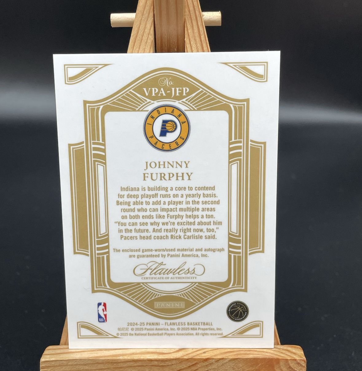 2024-25 Panini Flawless Johnny Furphy RC 【白鸟代卖 口罩】手提 约翰尼 弗菲 新秀 10编 金平行 VPA RPA 签字 卡签 GU patch球衣 微瑕如图