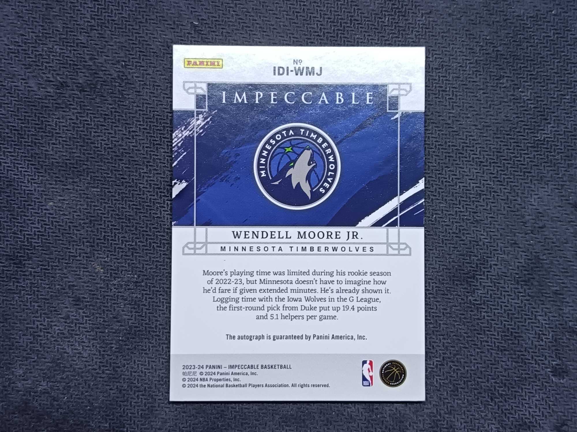 2023-24 Panini Impeccable Wendell Moore Jr. RC 温德尔摩尔 小真金 99编 签字 森林狼
