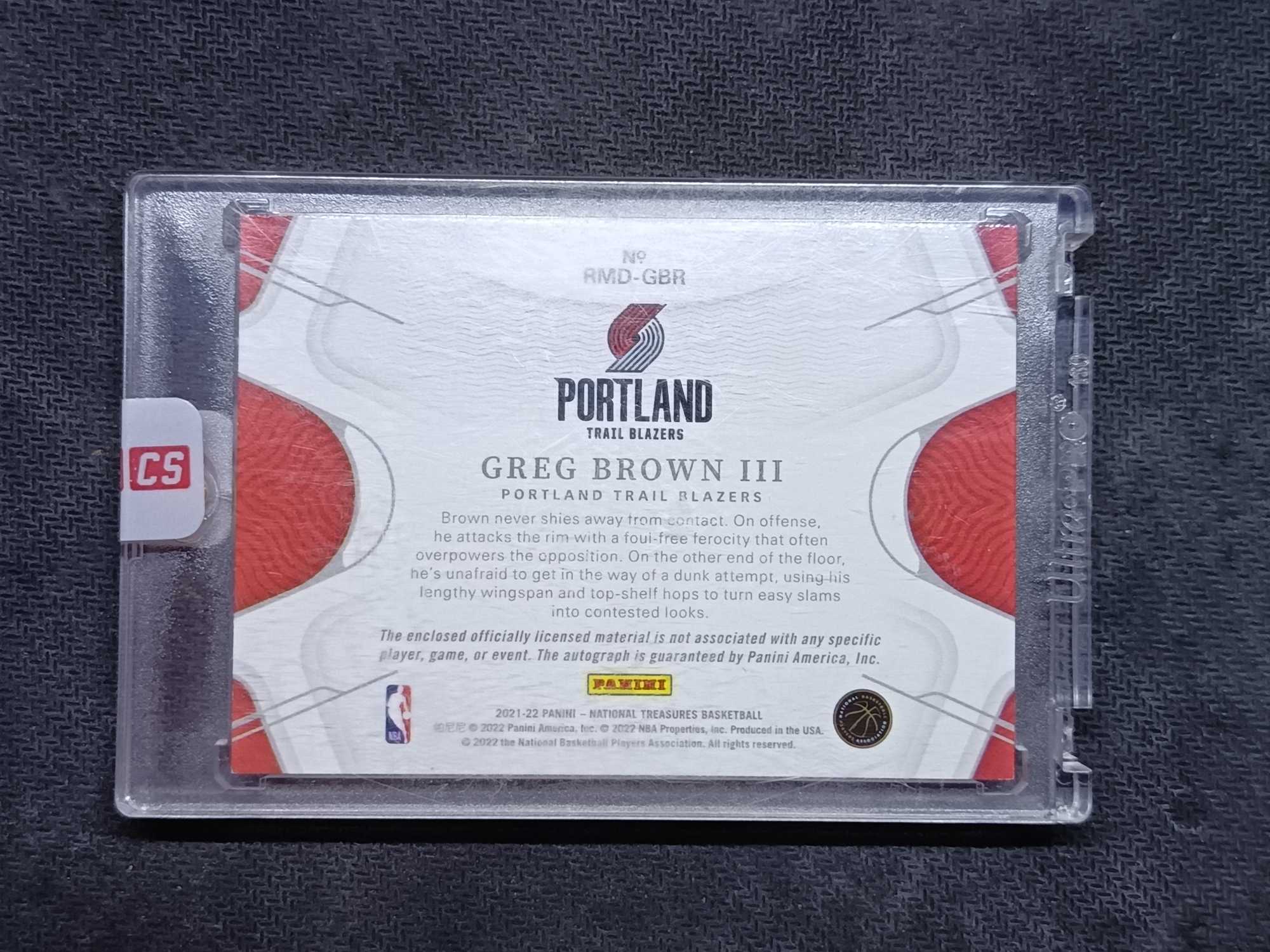 2021-22 Panini National Treasures Greg Brown III RC 格雷格 布朗 国宝 rpa 99编 新秀 库明加 吉迪 申京