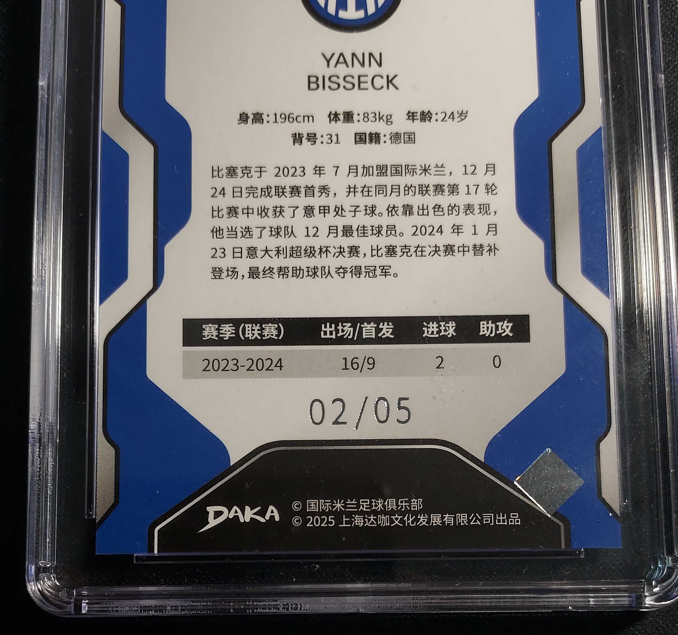 2024-25 DAKA Inter Milan Yann Bisseck 2/5编 达咖 队盒 金折 折射 低编 卡品如图 专收 收藏必备