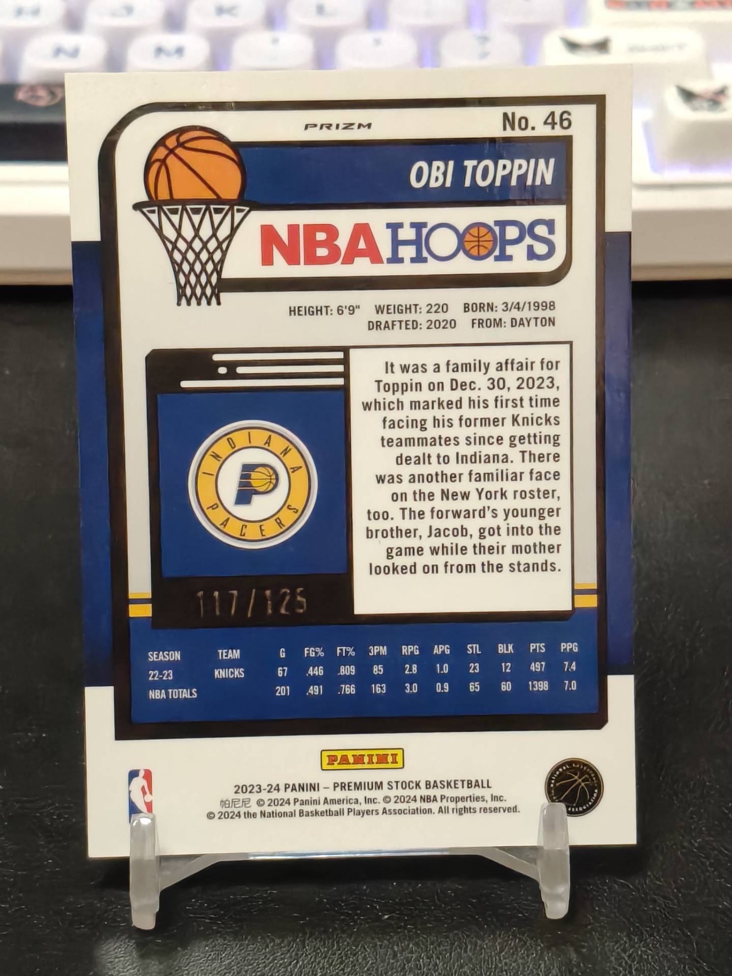 【浩行拍卖 截标预付82%】2023-24 panini hoops premium stock obi toppin 步行者 奥比 托平 橙碎冰折 折射 117/125编 专收必备 瑕疵看图「zn123」1101G02兿