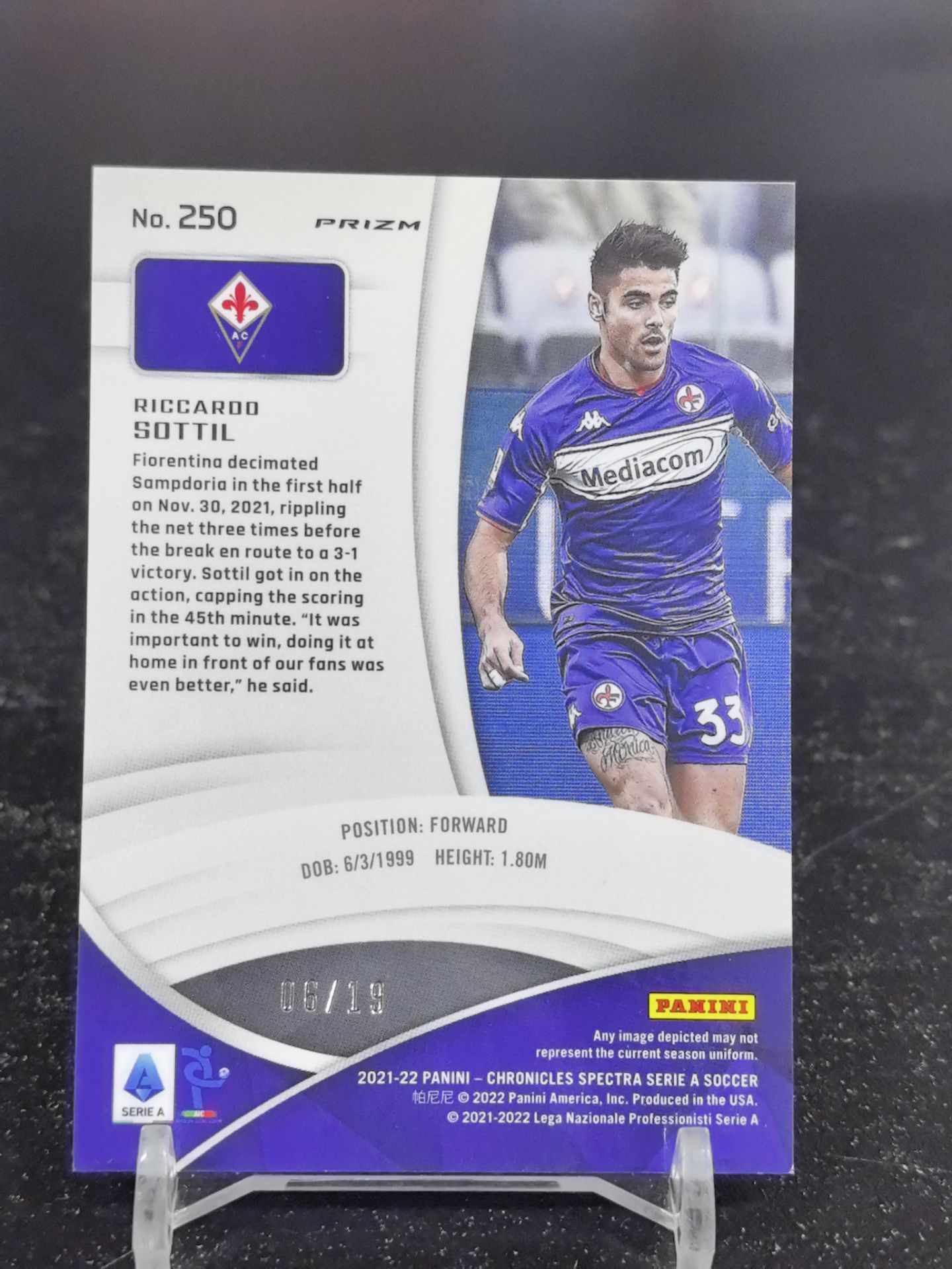 【浩行拍卖 截标预付82%】2021-22 PANINI chronicles spectra Riccardo Sottil 编年史 光谱 佛罗伦萨 里卡尔多 索蒂尔 紫波纹折 折射 6/19编 低编 瑕疵看图「乐清」1101N02紋