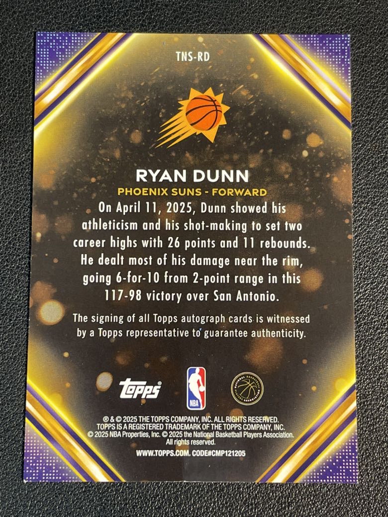 2025 Topps NBA Flagship Ryan Dunn 138 瑞安 邓恩 太阳 Notch 签字 顶级签 微瑕如图 卡品如图 尖叫代拍 M哥