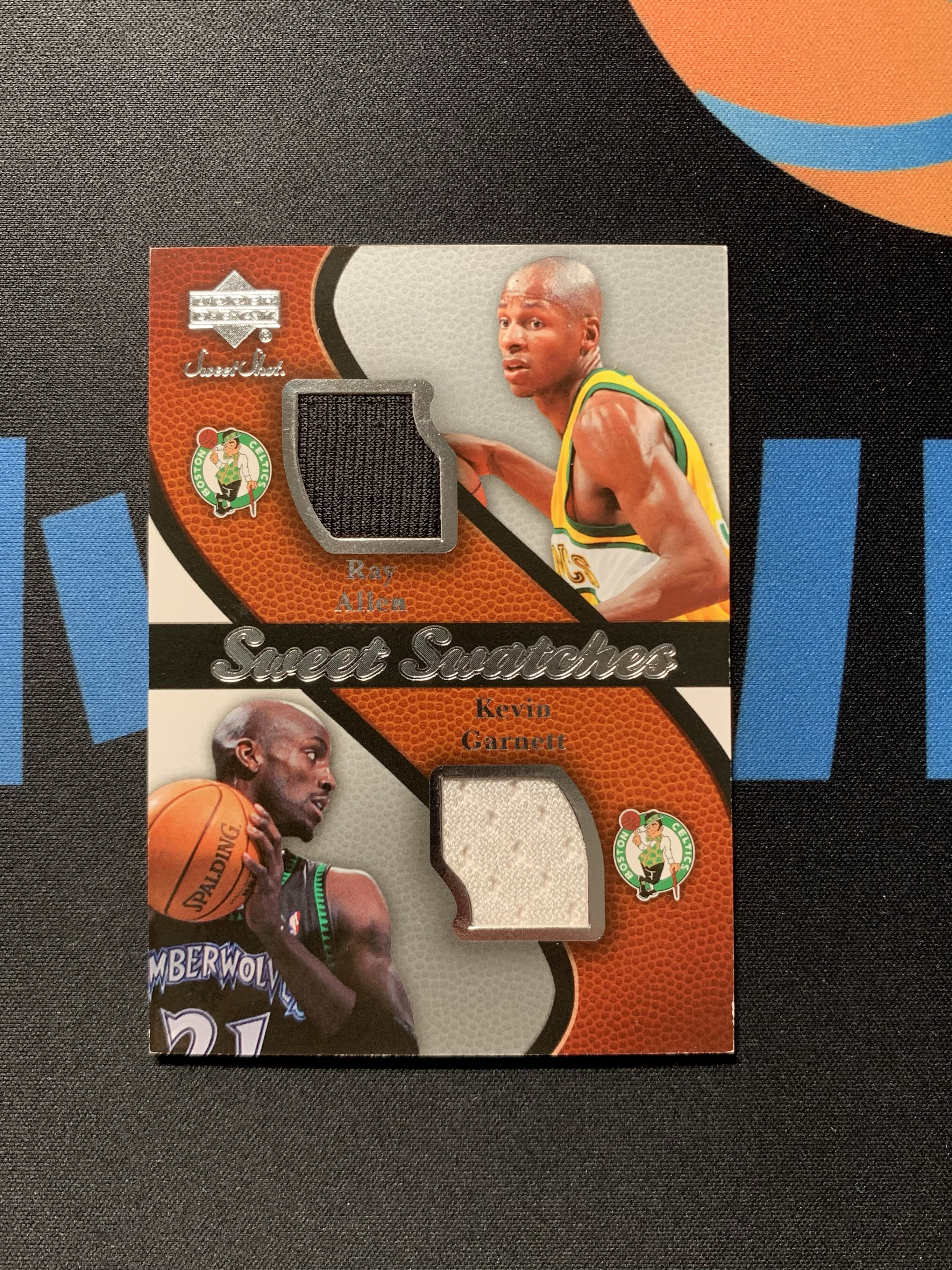 2007-08 Upper Deck Sweet Shot Kevin Garnett 凯尔特人 雷 阿伦+凯文 加内特 Sweet Swatches双人球衣物料 边微白 请仔细阅读描述 小鱼儿QMY
