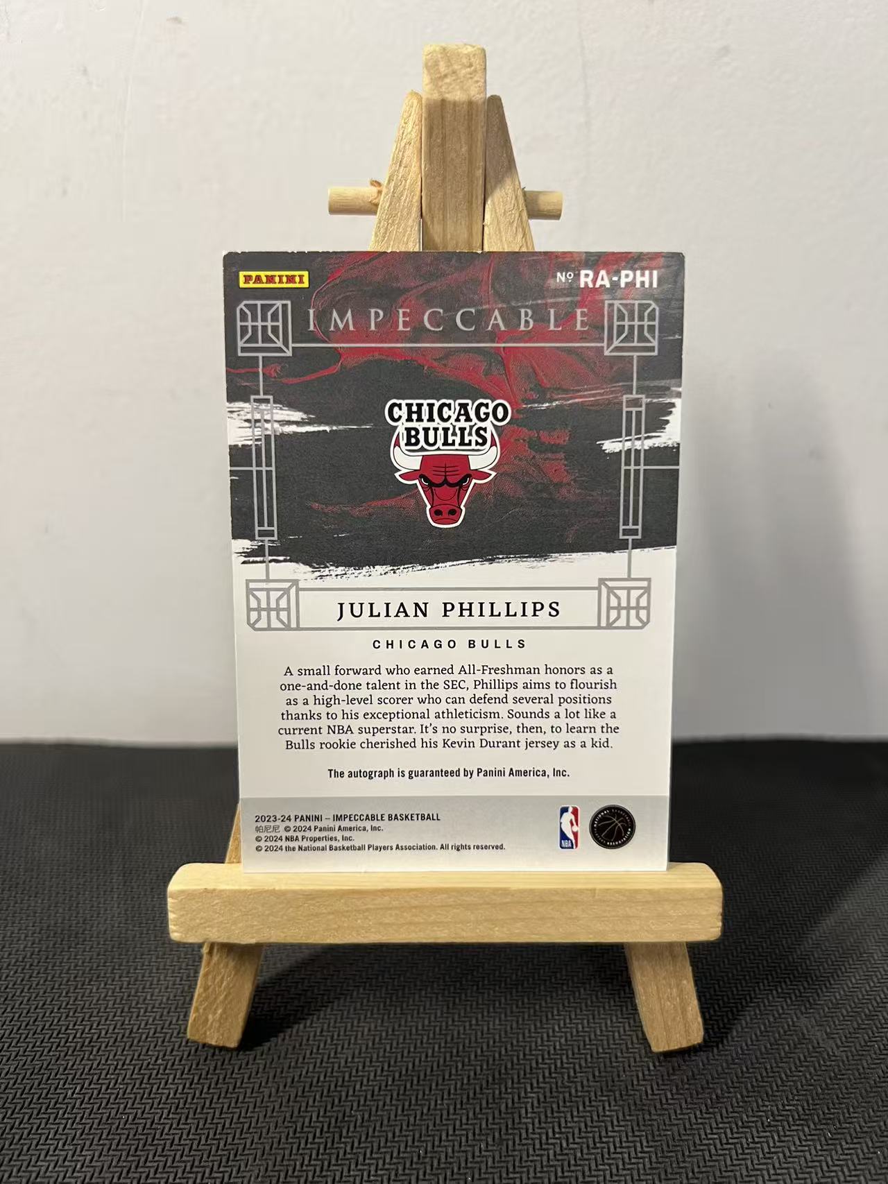 2023-24 Panini Impeccable Julian Phillips RC 【FV拍卖】朱利安 菲利普斯 公牛 新秀 飞鱼 小真金 卡签 签字 66/99编 通行卡品