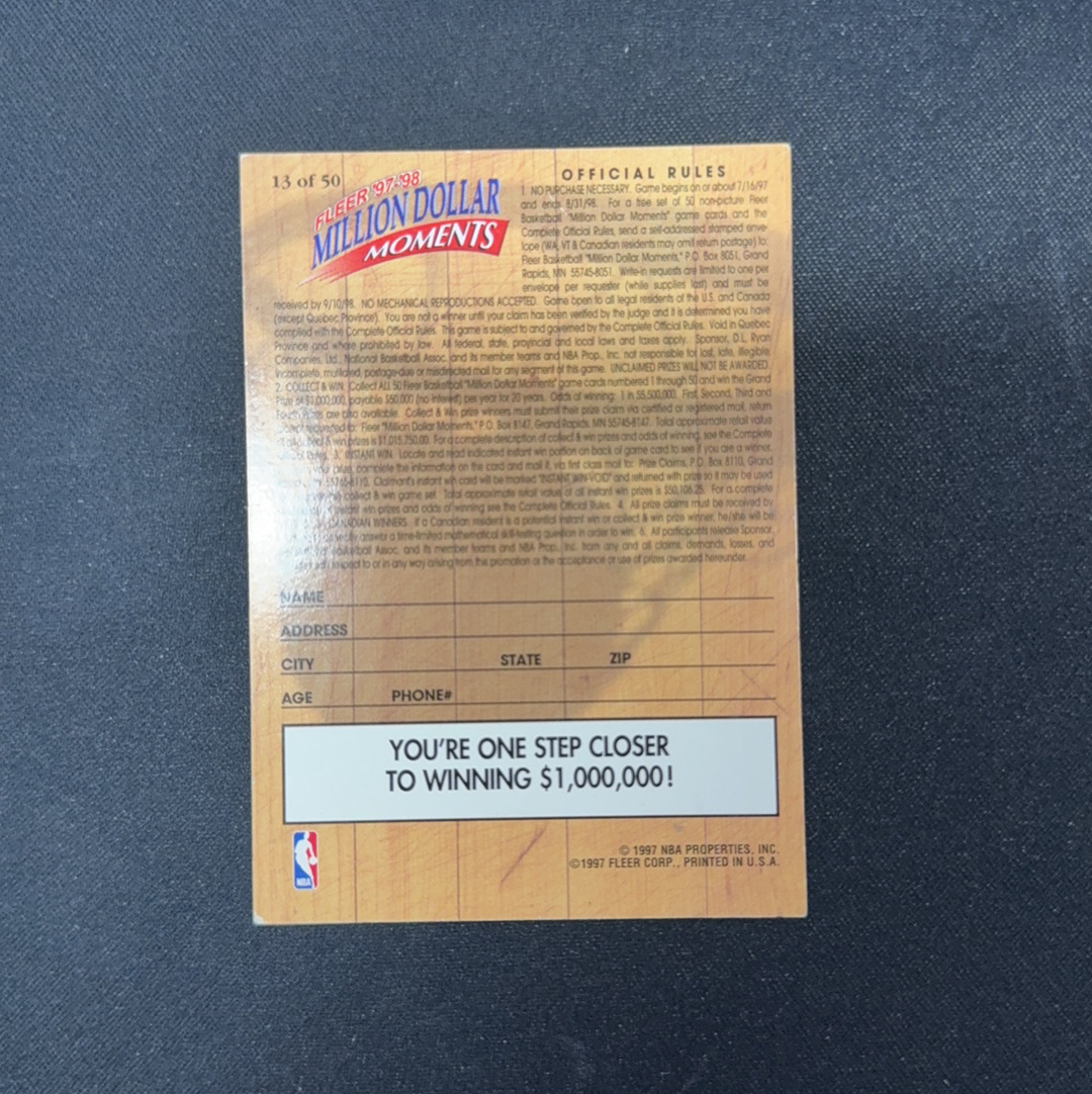1997-98 Fleer Million Dollar Moments Allen Iverson 阿伦 艾弗森 答案 76人 新秀次年 经典老特 瑕疵较多 介意勿拍