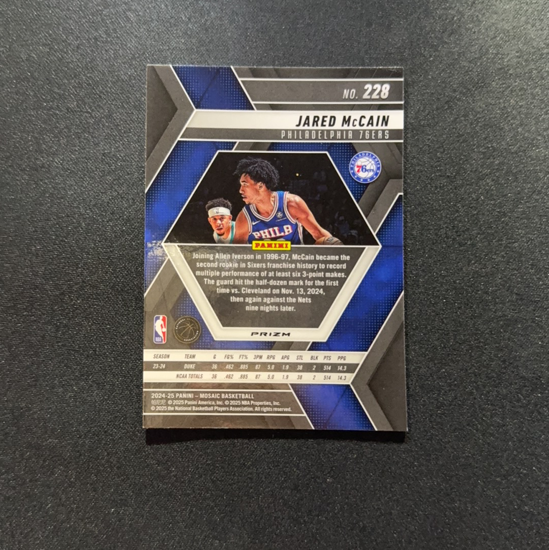 2024-25 Panini Mosaic Jared McCain RC 贾里德 麦凯恩 76人 马赛克 新秀 镭射折 恩比德马克西乔治队友 卡品如图 Cyt