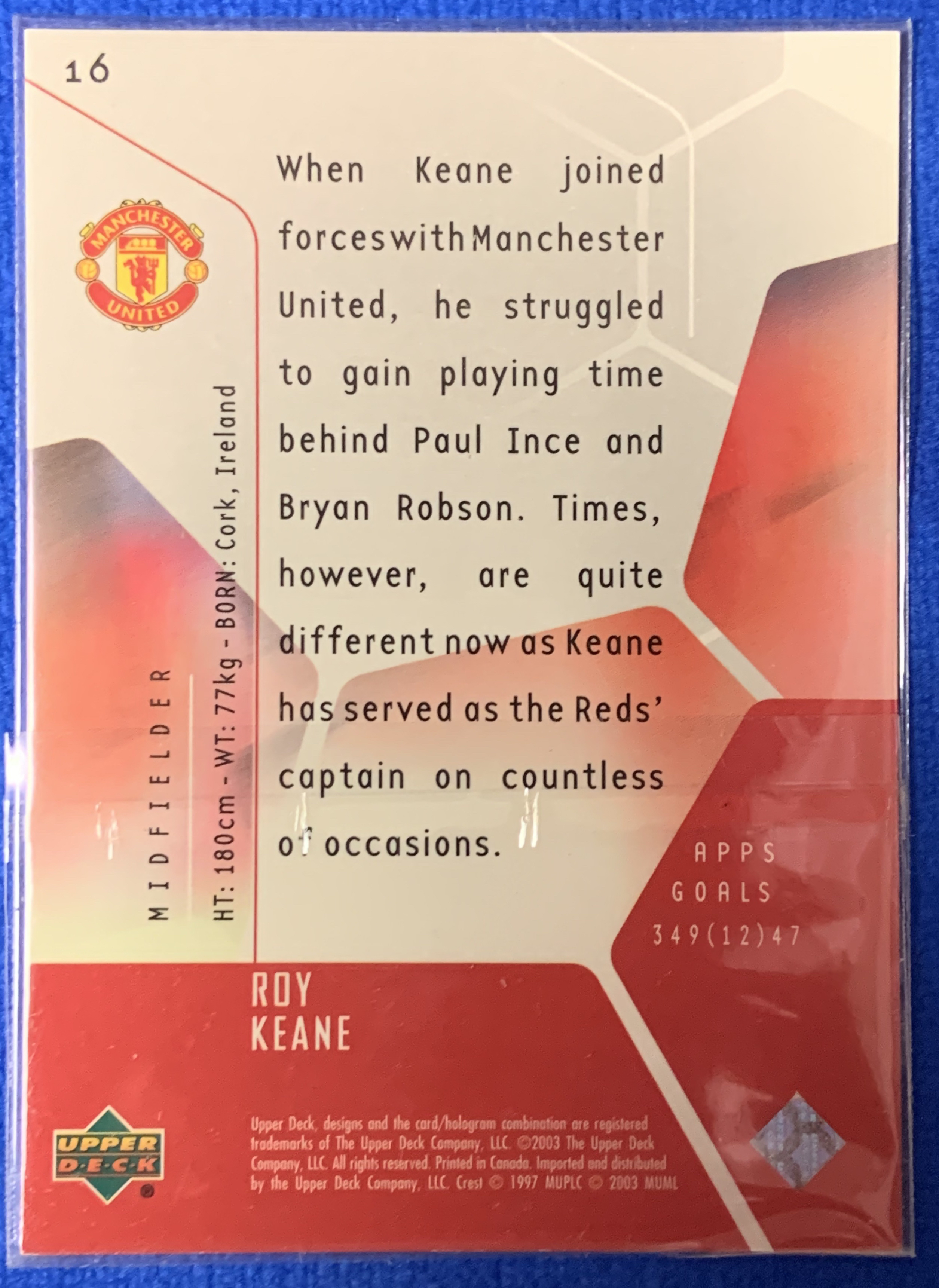 2003 Upper Deck Manchester United Roy Keane 亚德 曼联铁血队长 基恩 英超标志性人物 三冠王 爱尔兰Ireland 经典老卡近乎绝版 不保卡品ebay有价