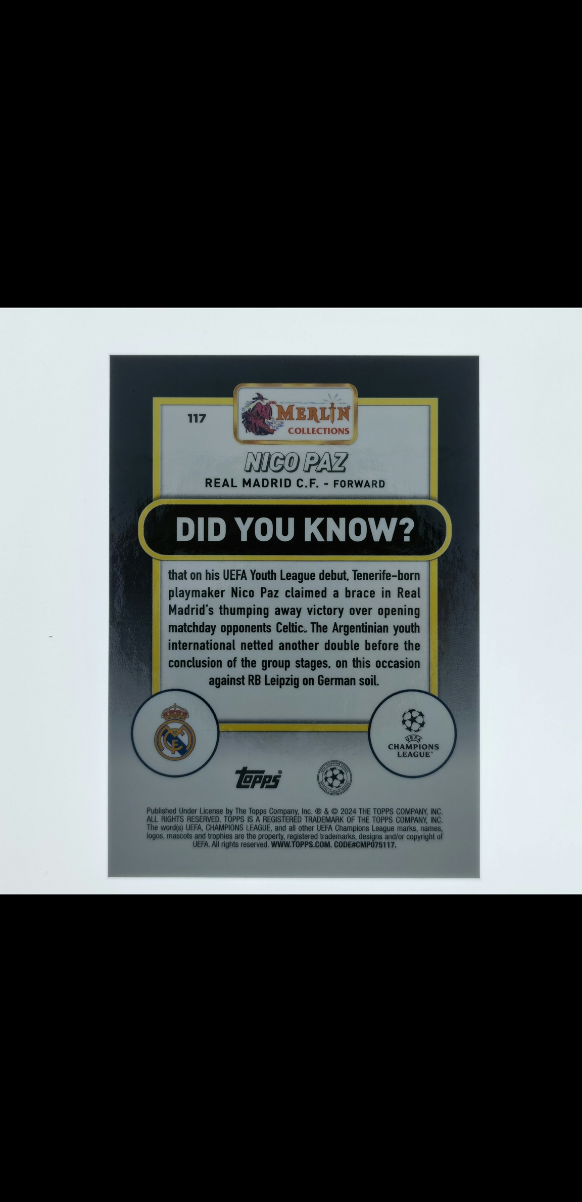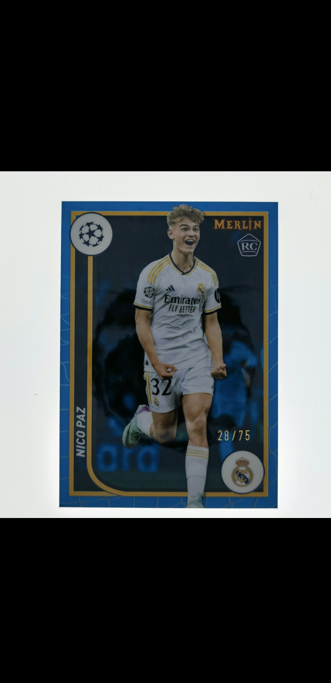 2024 Topps UEFA Champions League NICO PAZ RC 皇家马德里 尼克 帕兹 帕斯 新秀 RC 蓝折 梅林 28/75 实力新秀 未来可期 通行卡品 拍前看描述