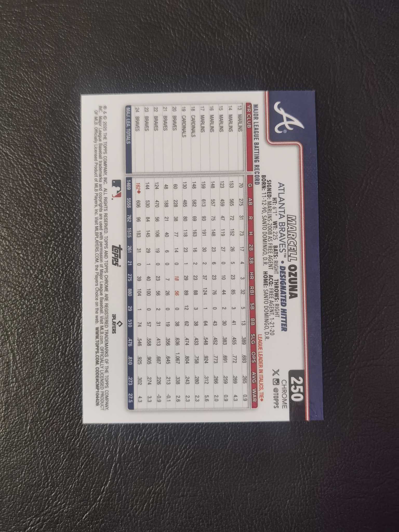 2025 Topps Chrome Marcell Ozuna 大熊 奥祖纳 299编 青折 带编 折射【ycy 草帽】