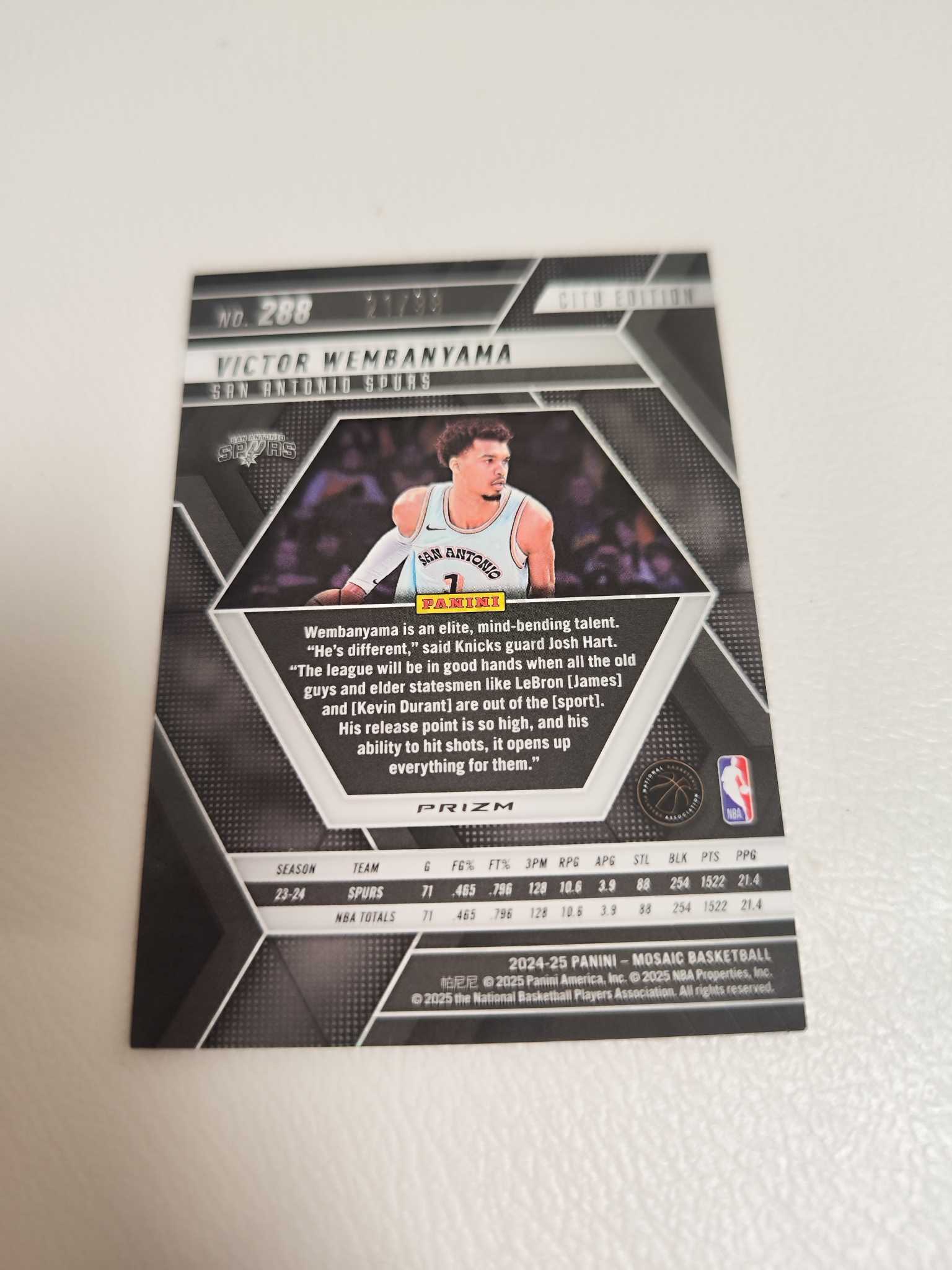 2024-25 Panini Mosaic Victor Wembanyama 文班亚马 马刺队 马赛克 21/99编 卡品如图所示 不保卡品 收藏必备 未来巨星