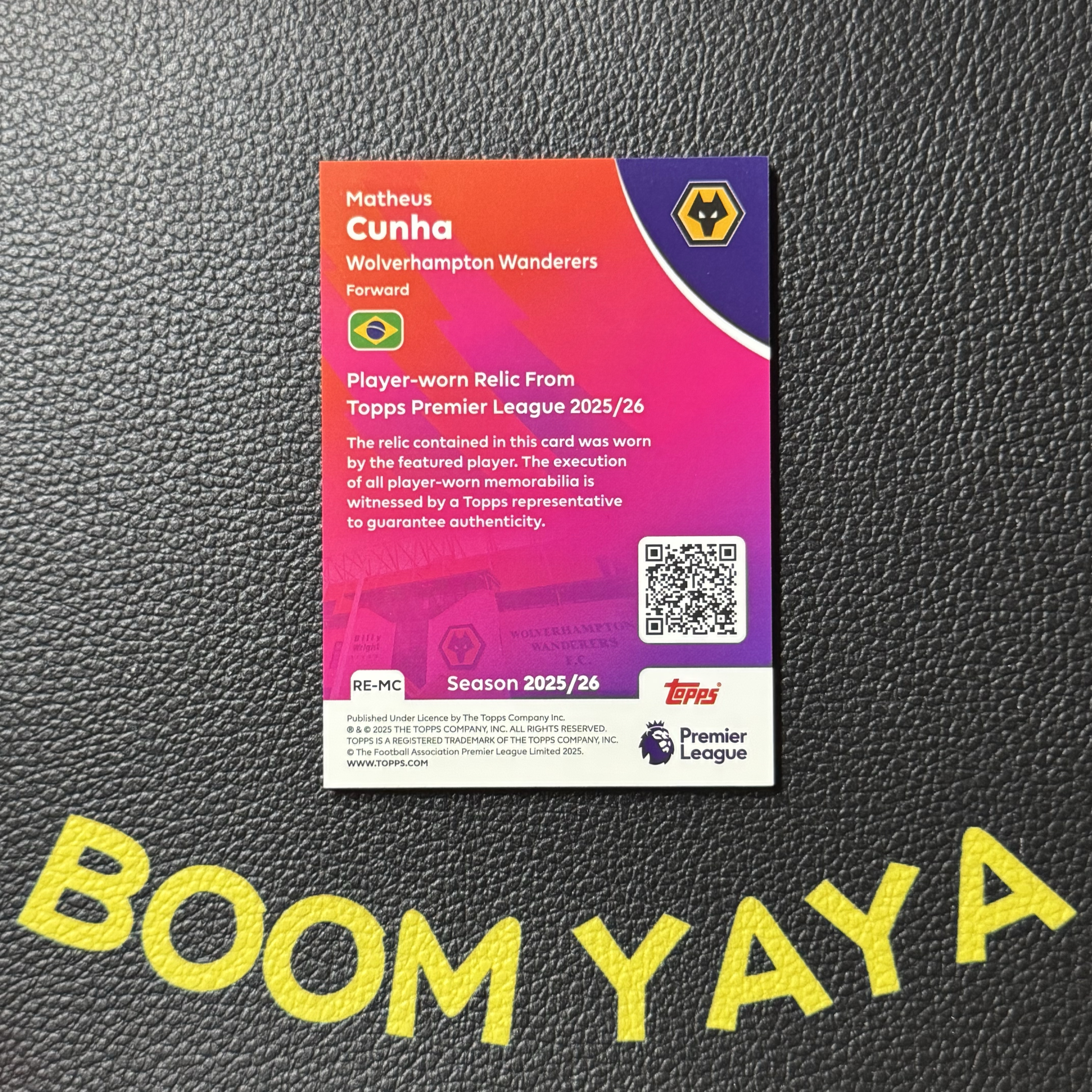 【Boom YaYa】 2025-26 Topps Premier League 英超 Matheus Cunha 库尼亚 狼队 英超 patch物料切割 曼联 红魔十号 默认微瑕 不累计 不到付