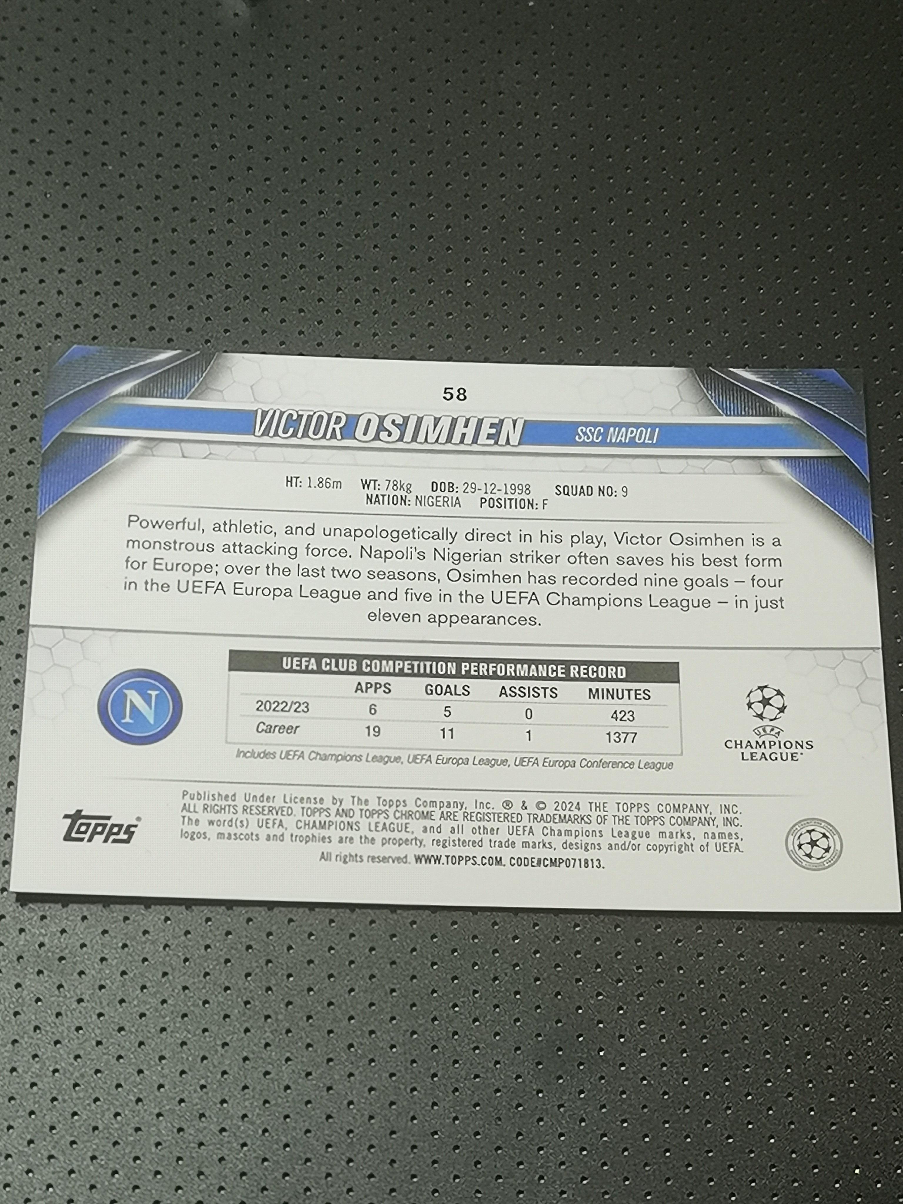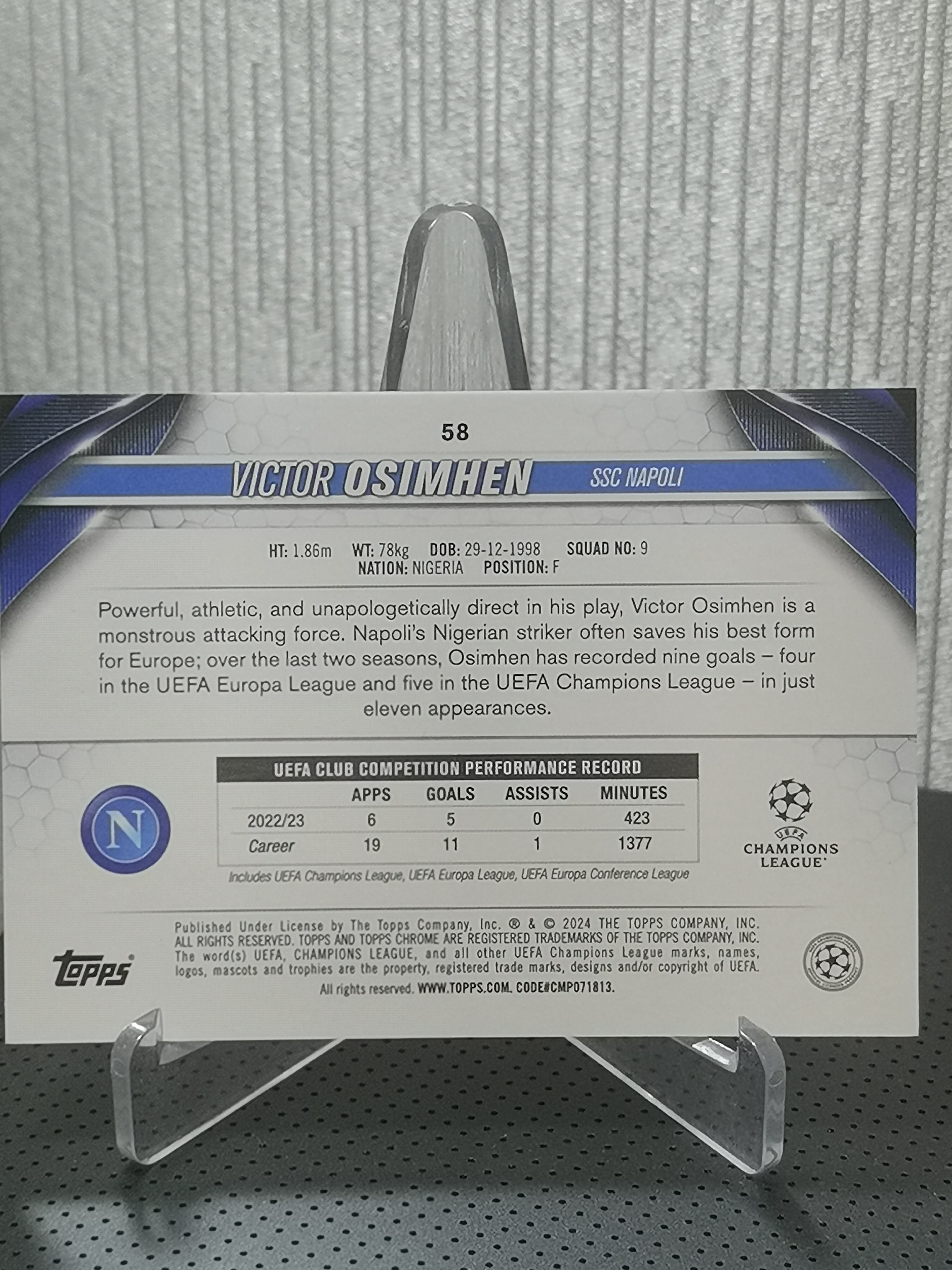 2024 Topps Chrome Victor Osimhen 欧冠蓝宝石 那不勒斯 维克托 奥斯梅恩 黑碎冰折 折射 09/10编 同背 尼日利亚🇳🇬 NIGERIA