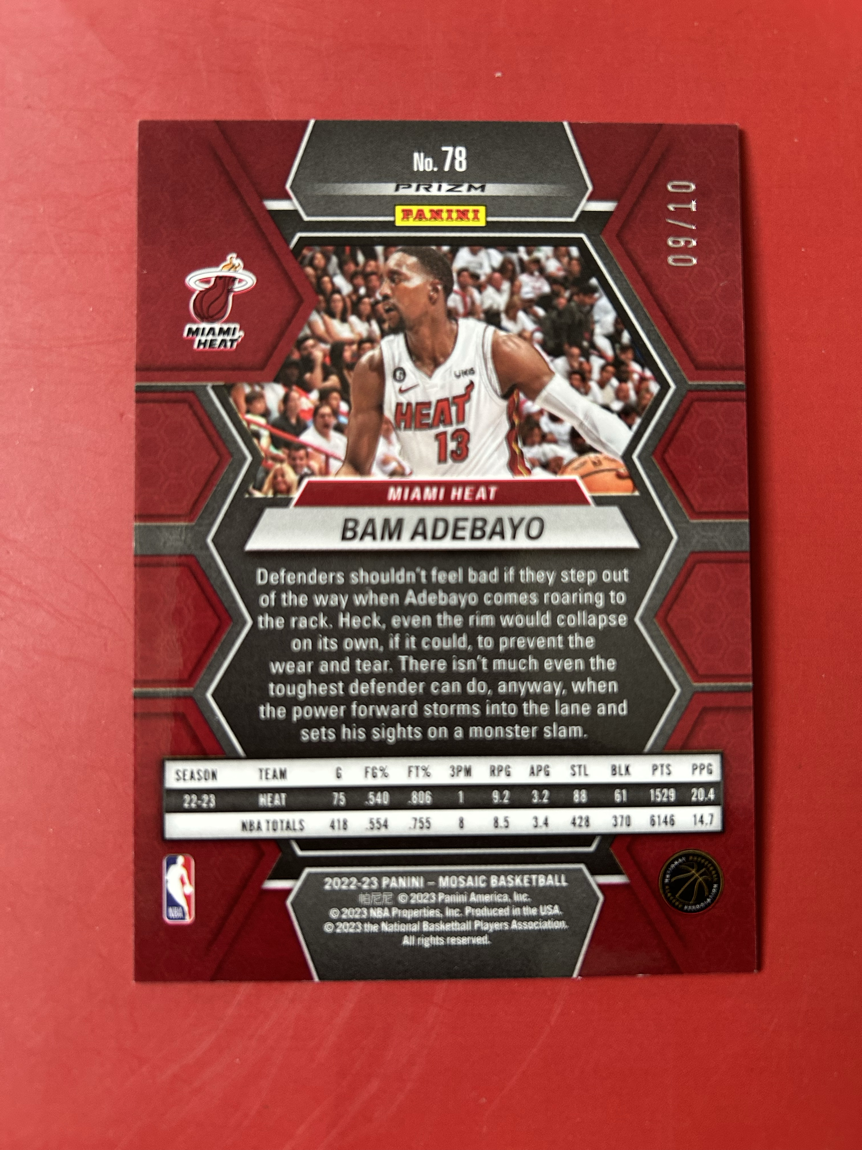 2022-23 Panini Mosaic Bam Adebayo 巴姆 阿德巴约 金折 折射 带编 6/10编 收藏必备