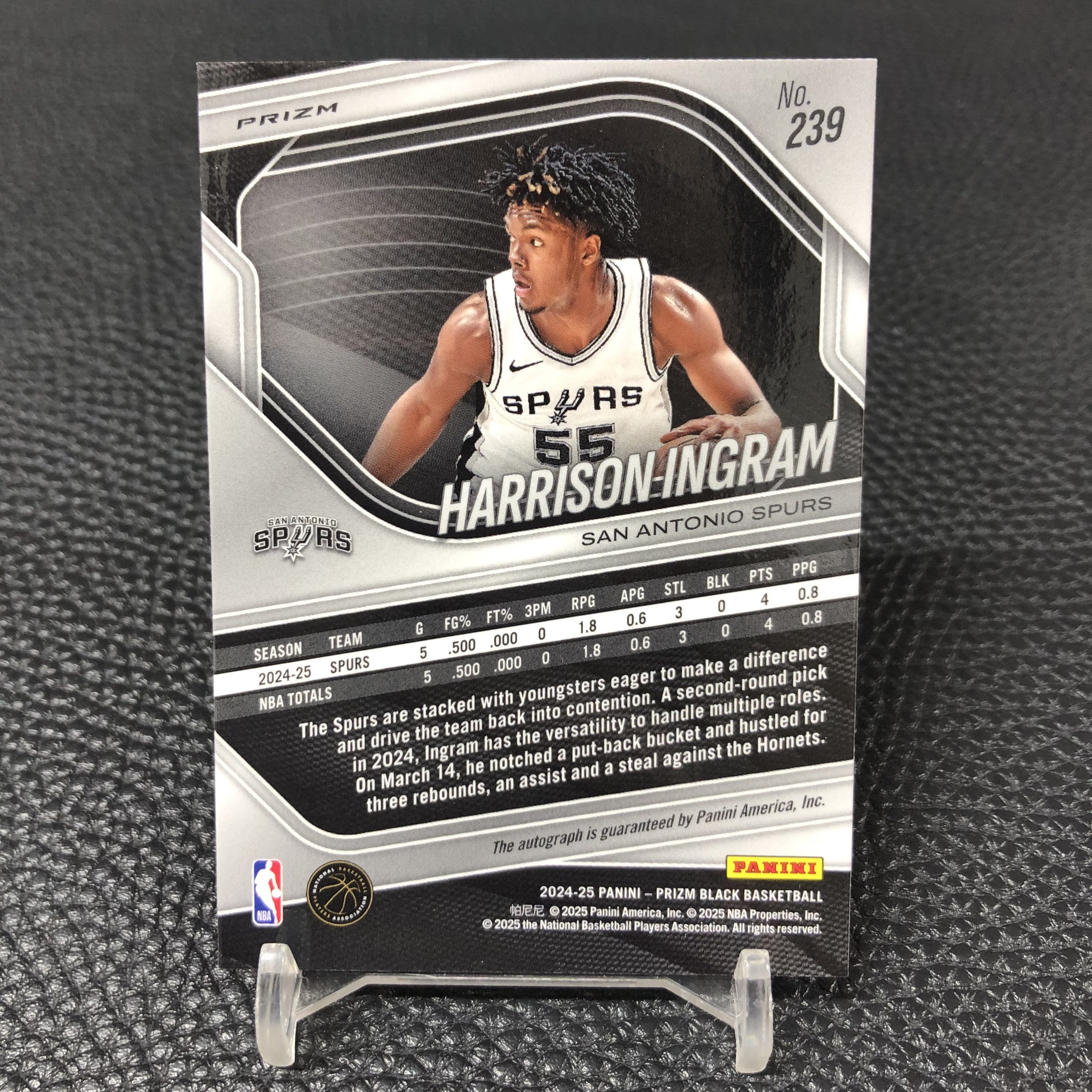 【浩行拍卖 截标预付82%】2024-25 panini prizm black Harrison Ingram 马刺 哈里森 英格拉姆 RC 新秀 签字 银折 折射 专收必备 瑕疵看图「赵棠」1102J01驡
