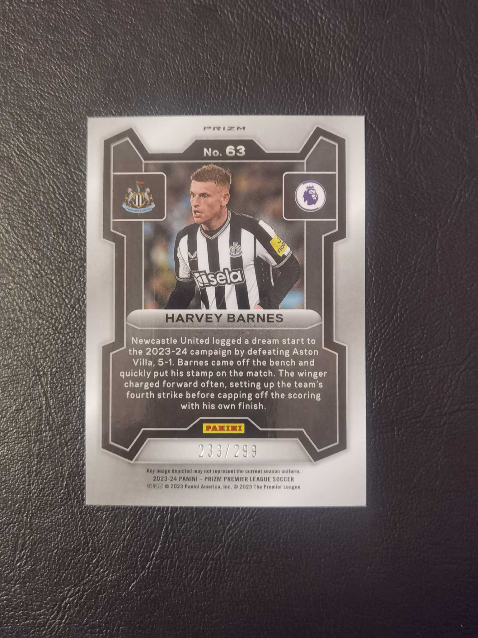 2025 Panini Prizm Harvey Barnes 巴恩斯 299编 蓝折 纽卡斯尔联 带编 折射【ycy 草帽】
